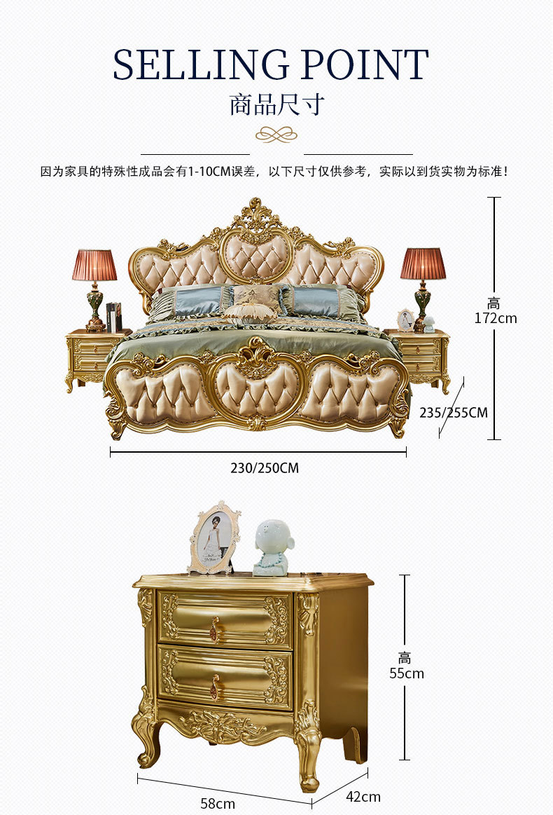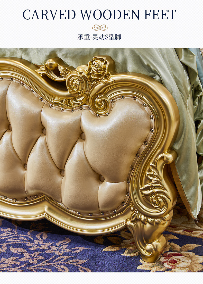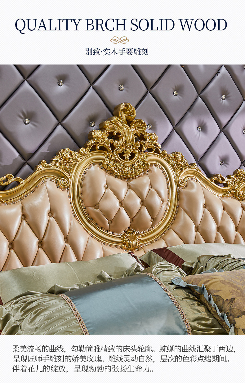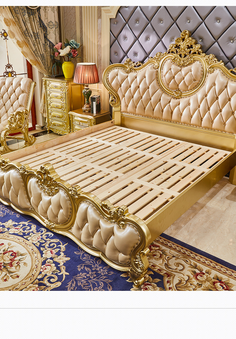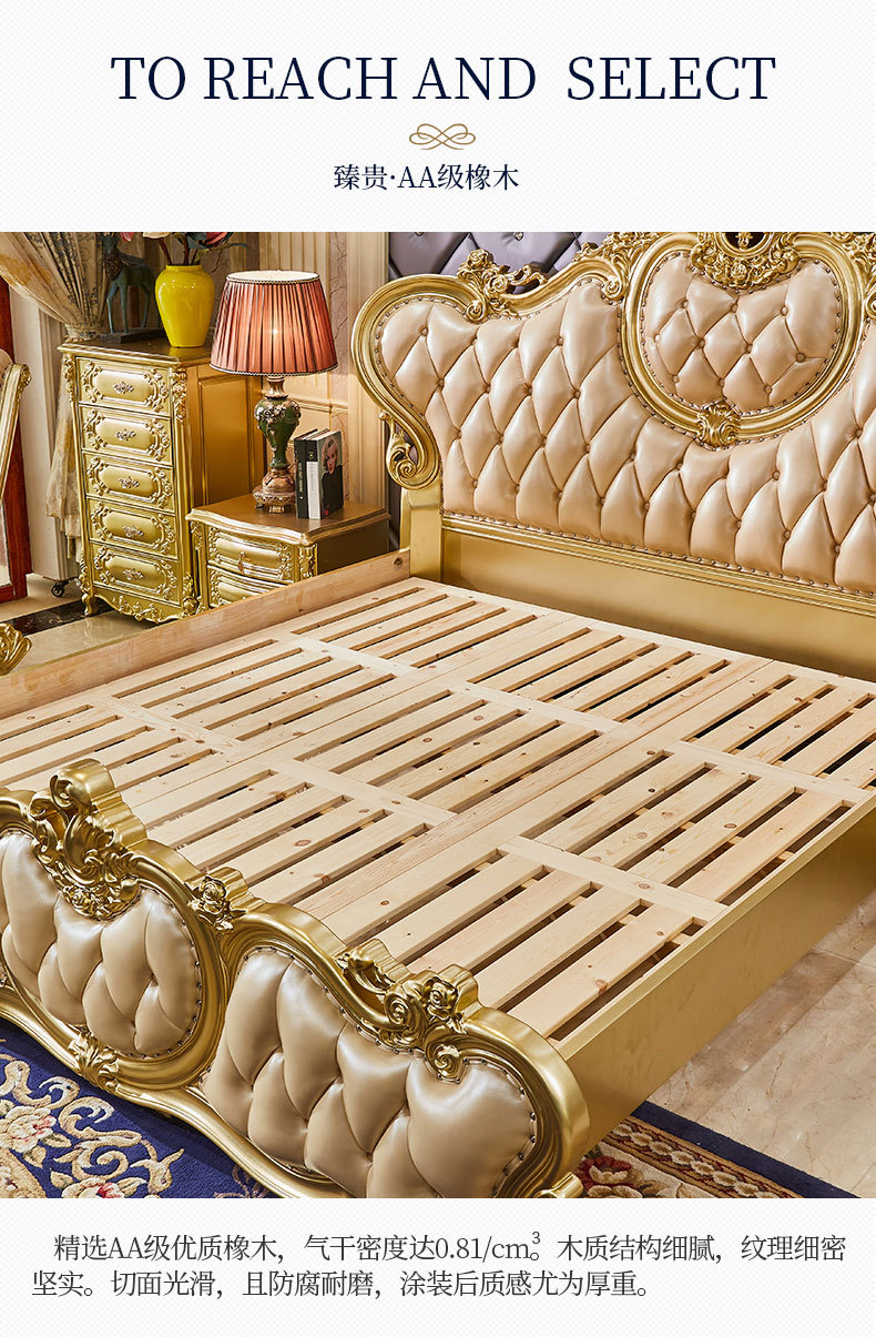 Giường phong cách châu Âu gỗ nguyên khối 1,8 giường lớn biệt thự đôi phòng ngủ chính mở rộng 2 mét 2,2 đám cưới công chúa da cao cấp sang trọng