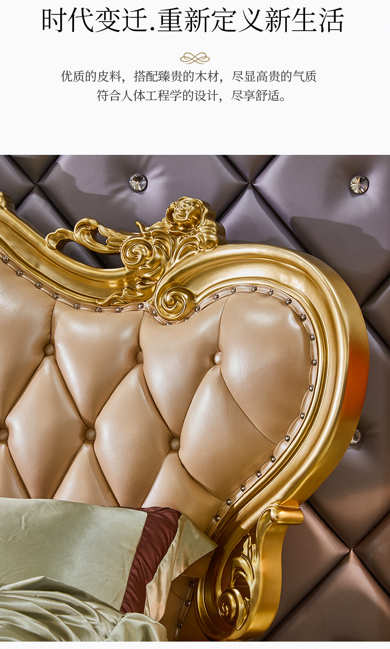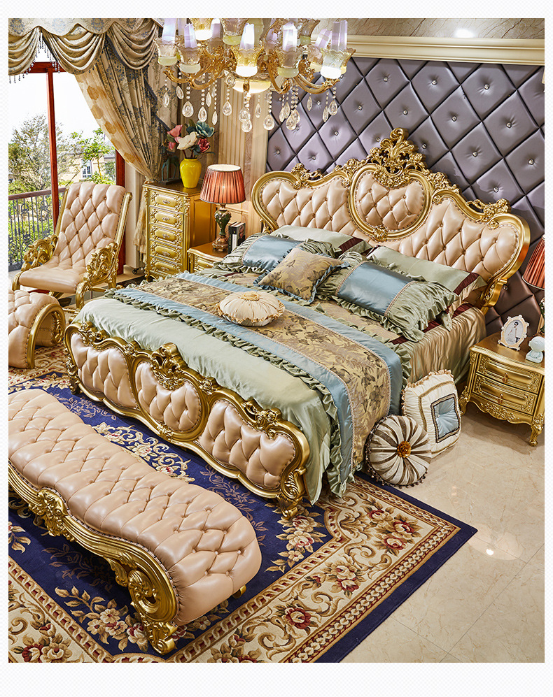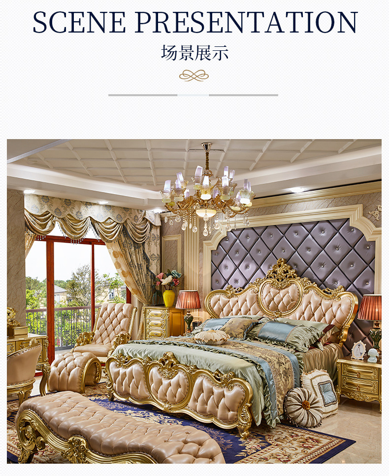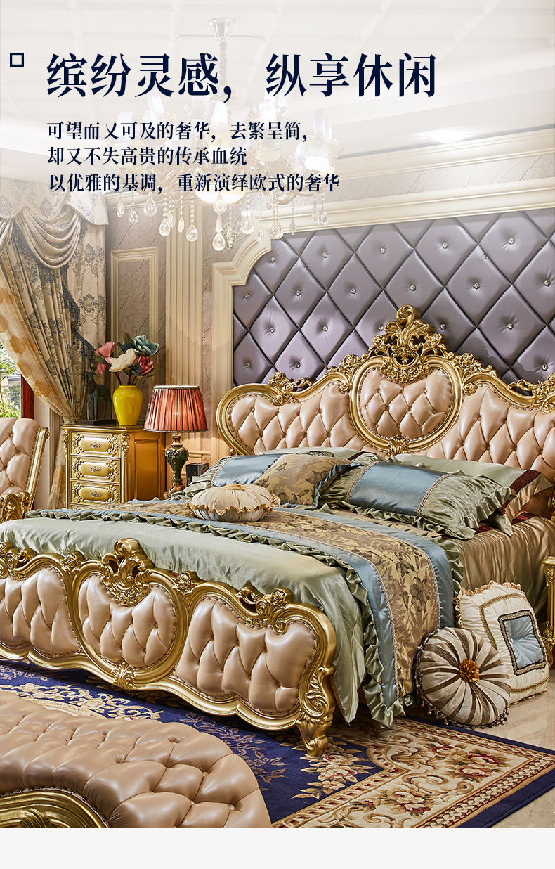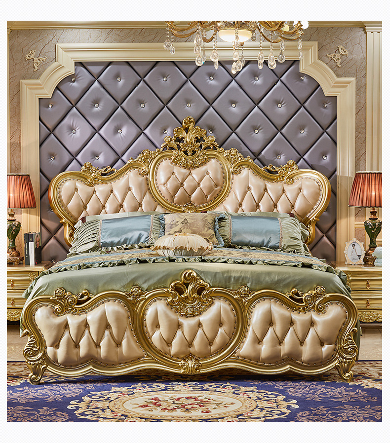 Giường phong cách châu Âu gỗ nguyên khối 1,8 giường lớn biệt thự đôi phòng ngủ chính mở rộng 2 mét 2,2 đám cưới công chúa da cao cấp sang trọng