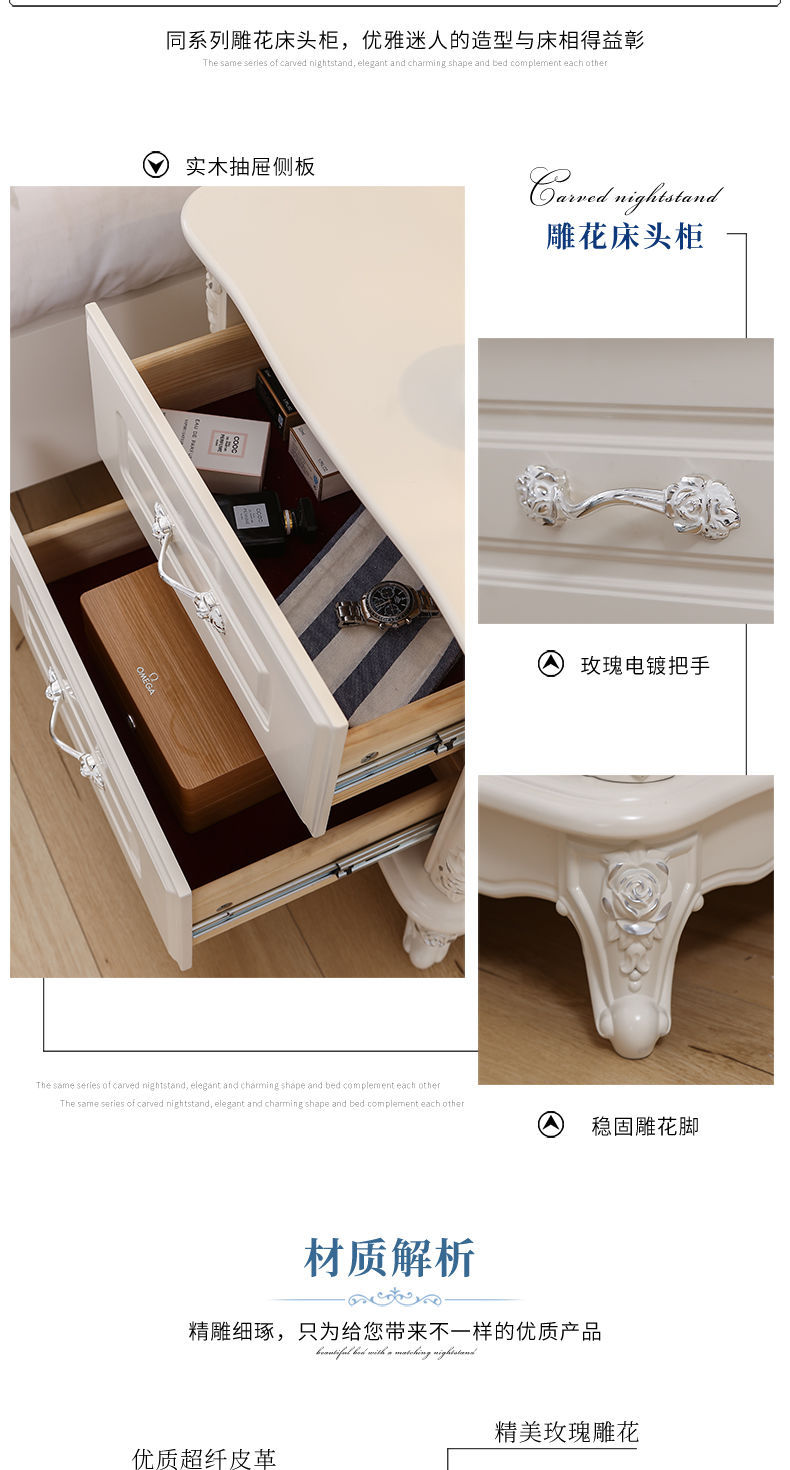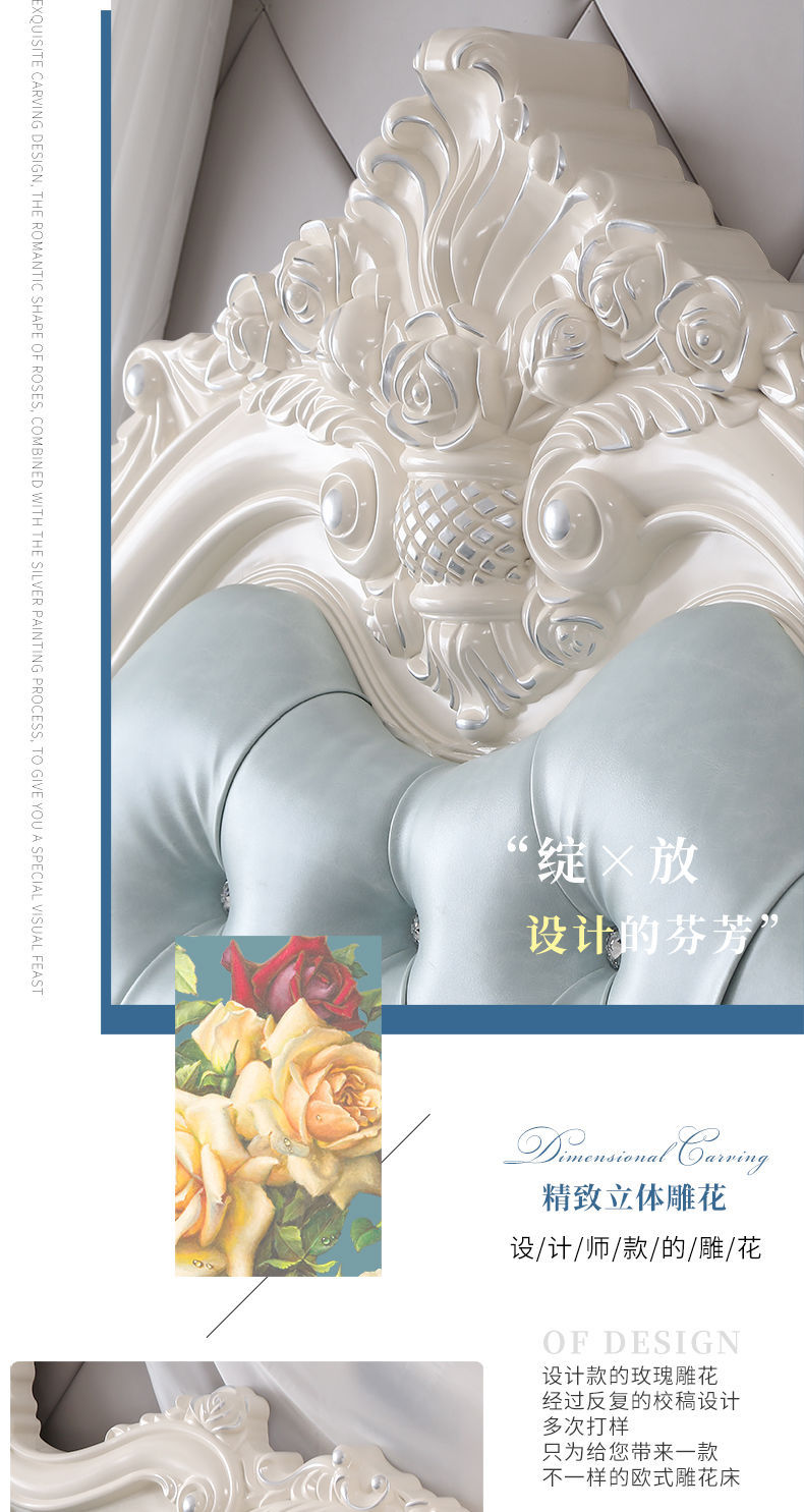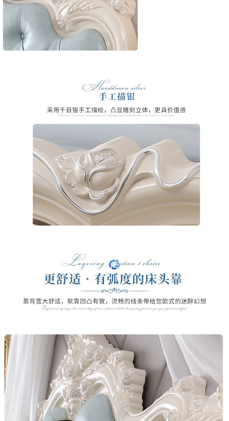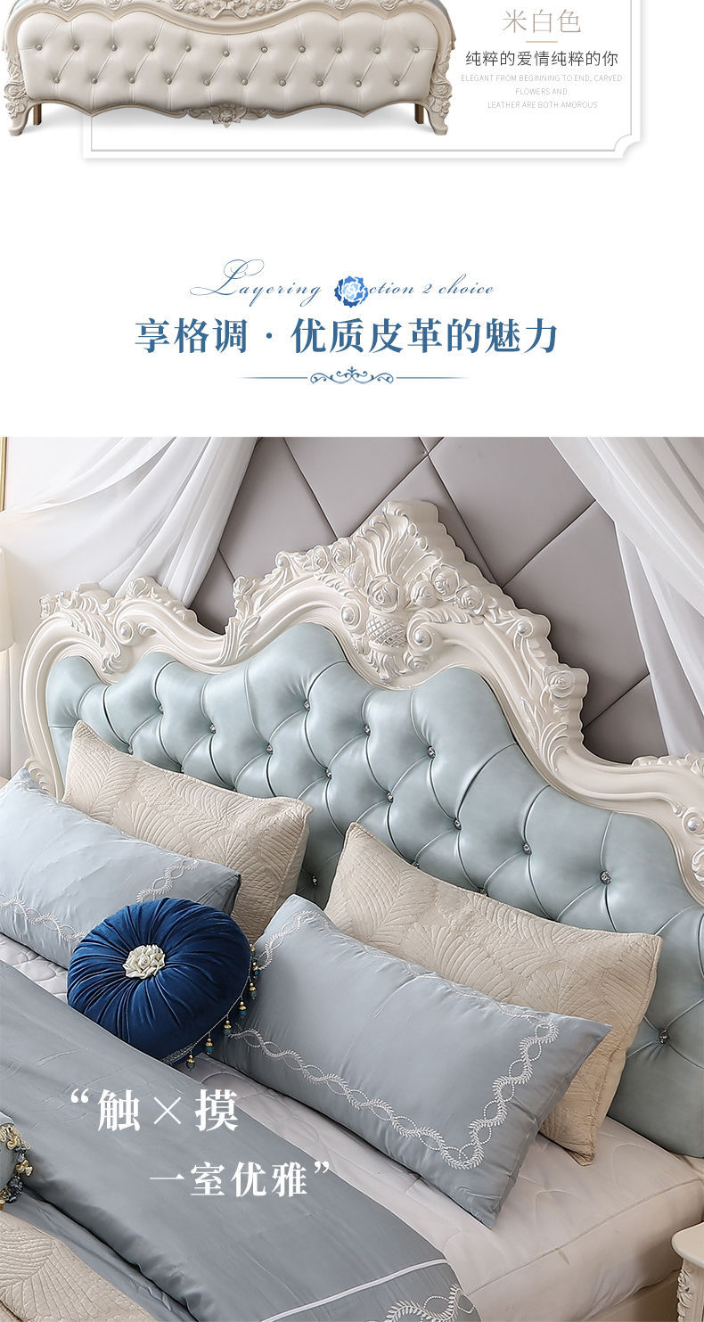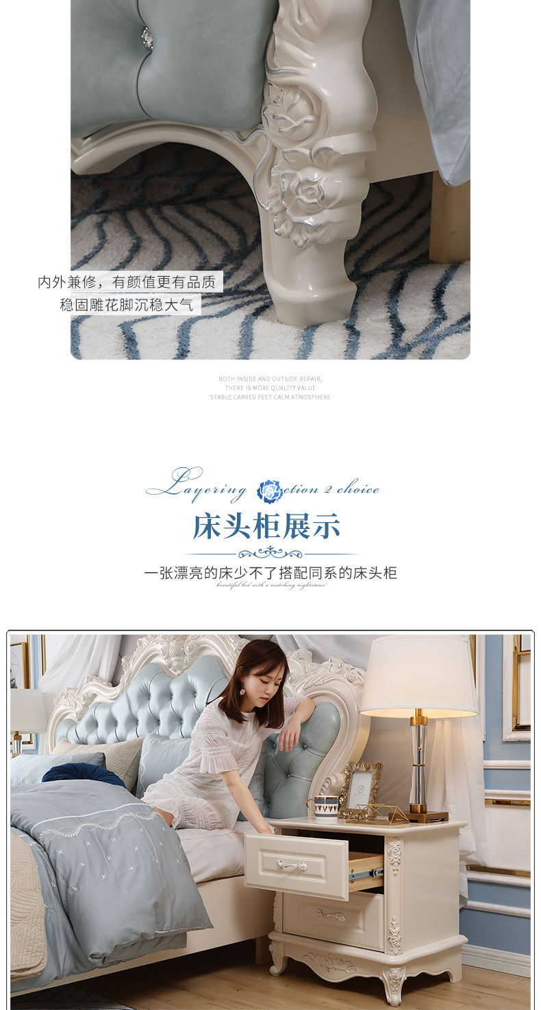 Giường phong cách Châu Âu phong cách Pháp 1.8m gỗ nguyên khối hộp cao giường cưới đôi công chúa công chúa bộ nội thất phòng ngủ master phong cách Châu Âu đơn giản 1.5m
