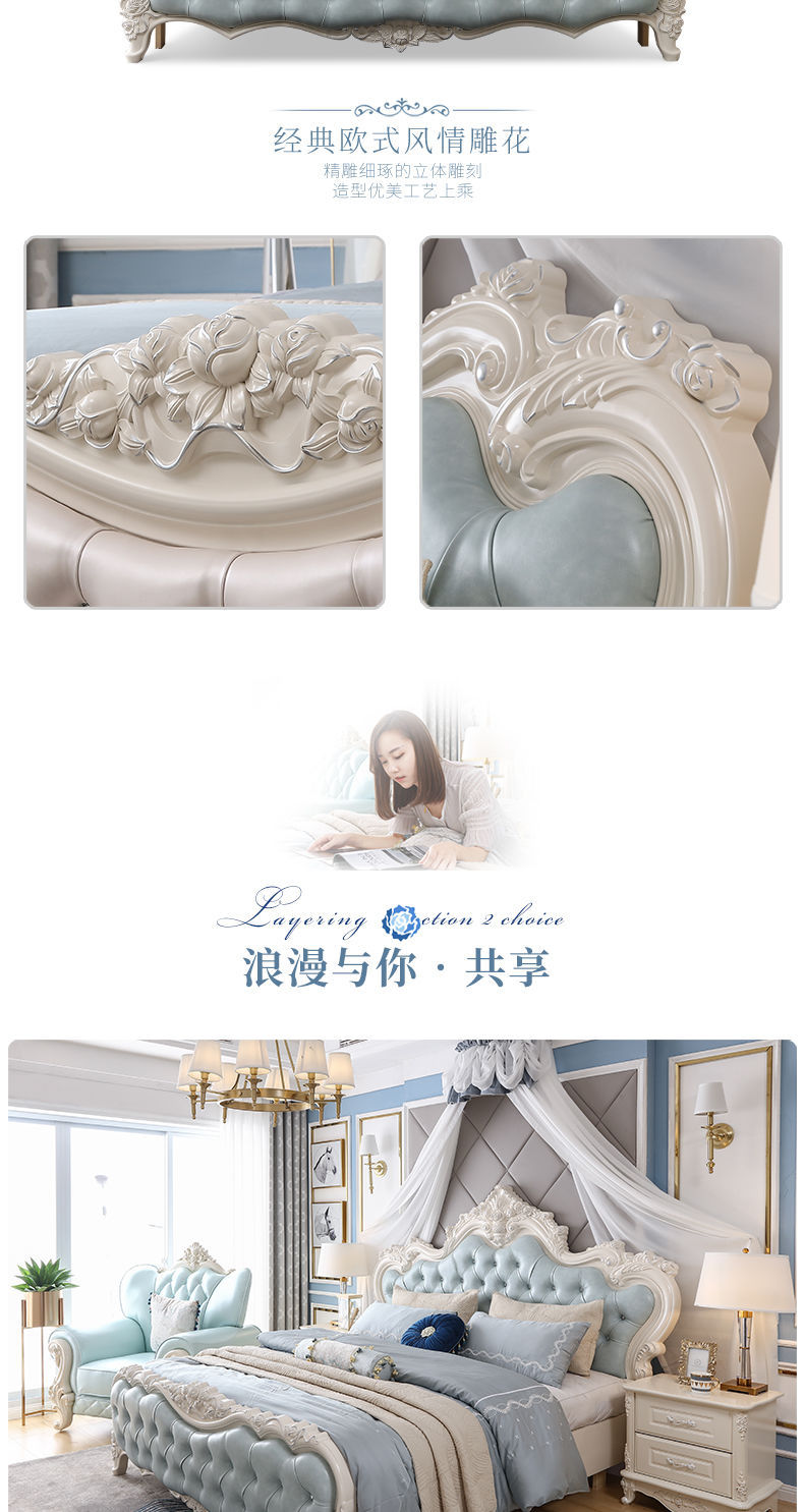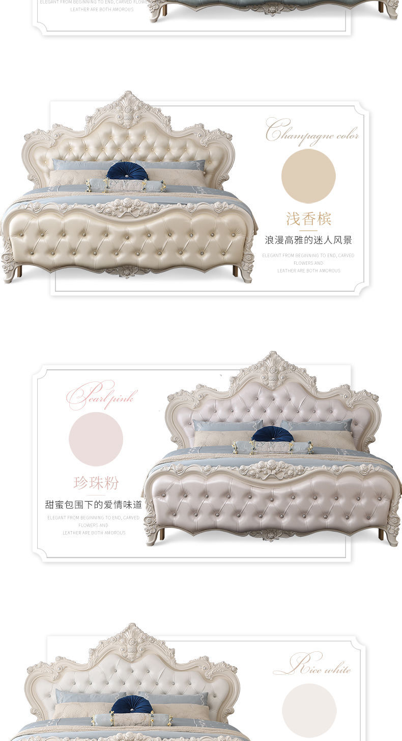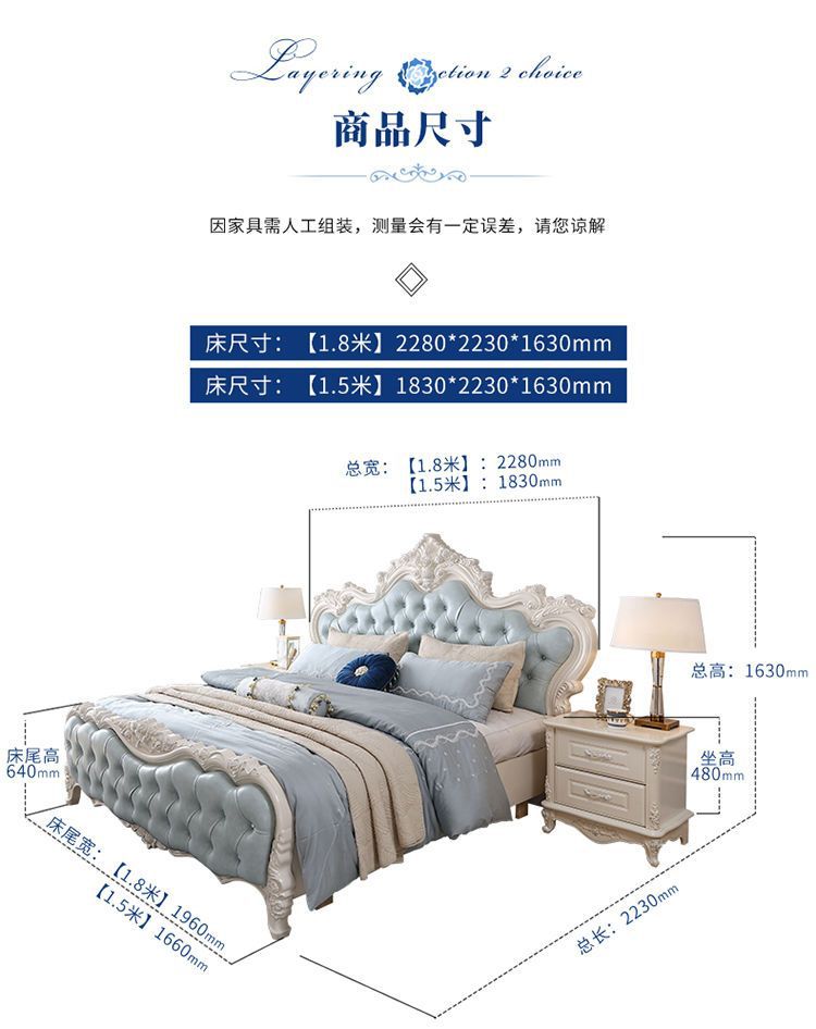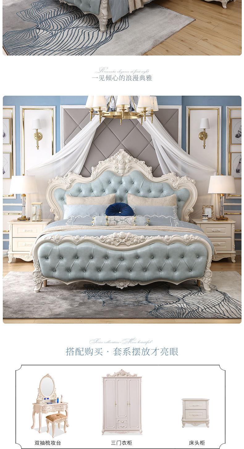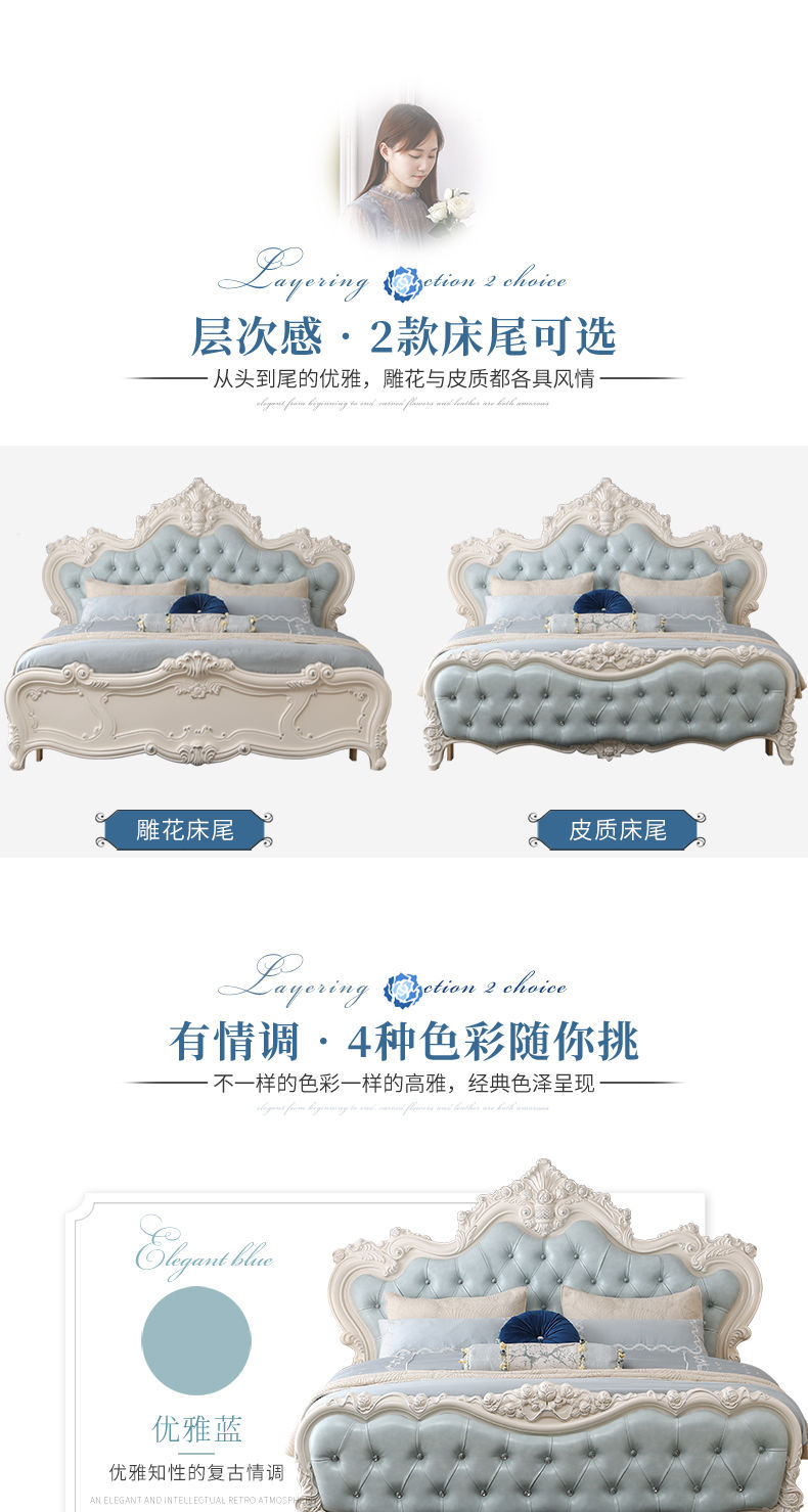 Giường phong cách Châu Âu phong cách Pháp 1.8m gỗ nguyên khối hộp cao giường cưới đôi công chúa công chúa bộ nội thất phòng ngủ master phong cách Châu Âu đơn giản 1.5m