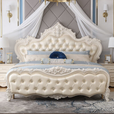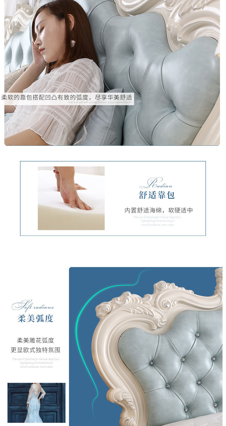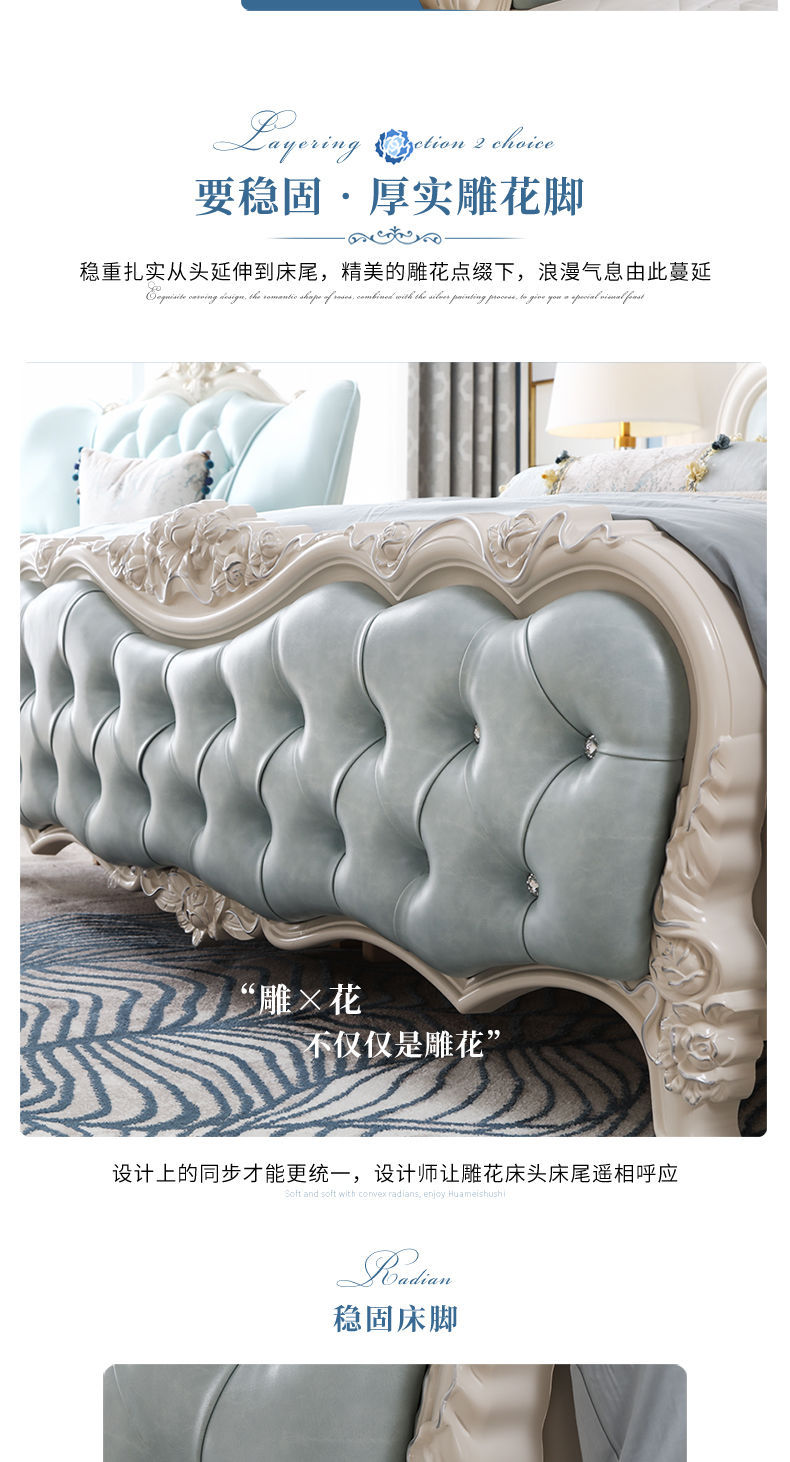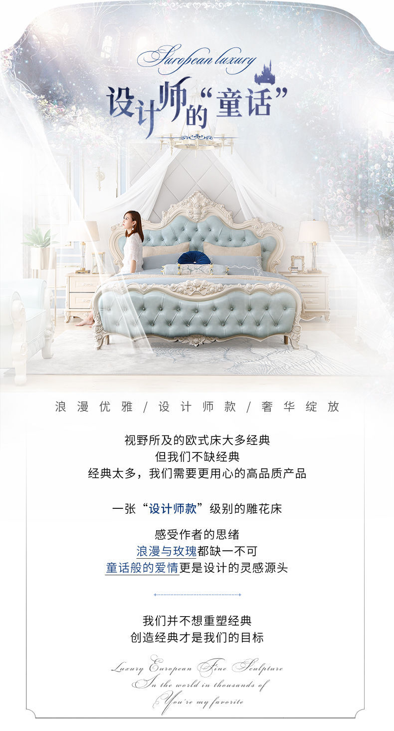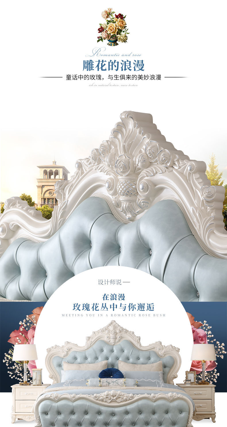 Giường phong cách Châu Âu phong cách Pháp 1.8m gỗ nguyên khối hộp cao giường cưới đôi công chúa công chúa bộ nội thất phòng ngủ master phong cách Châu Âu đơn giản 1.5m