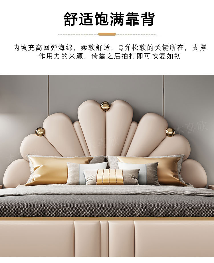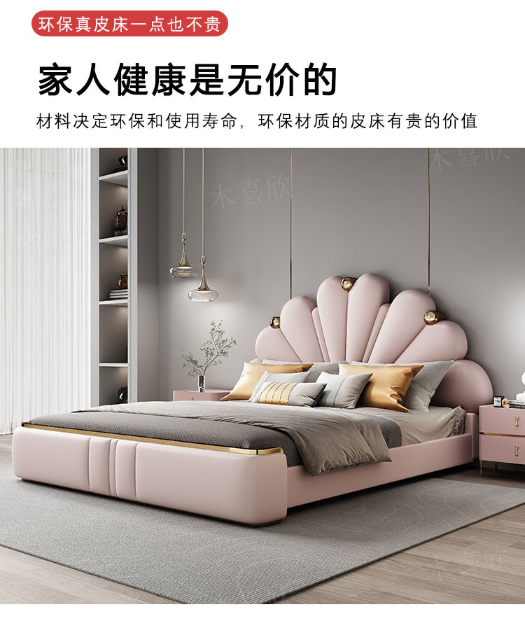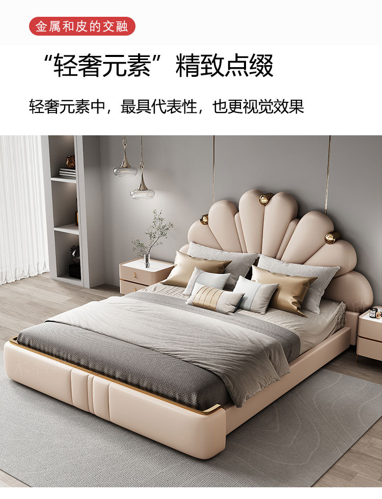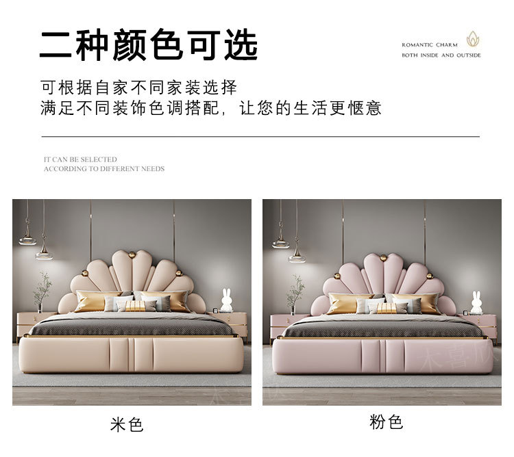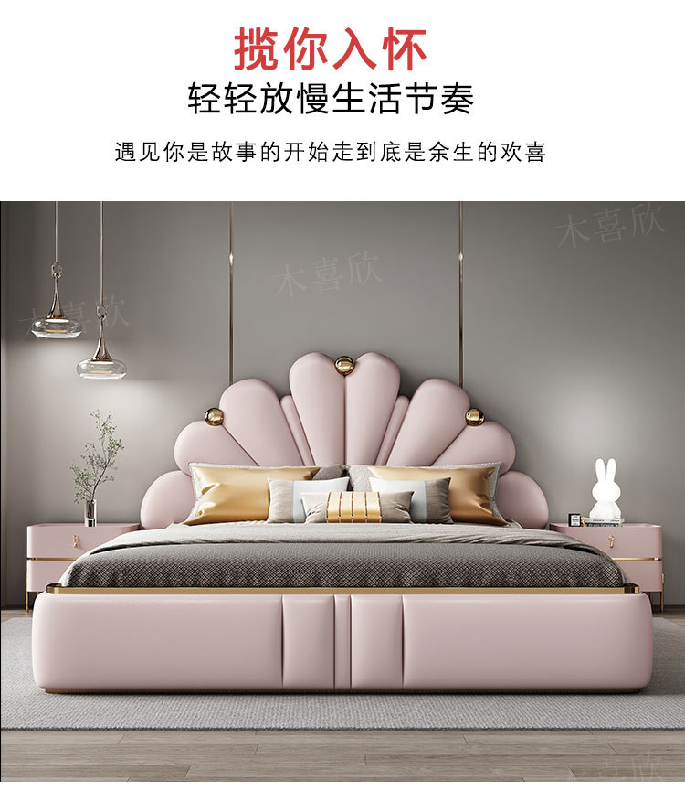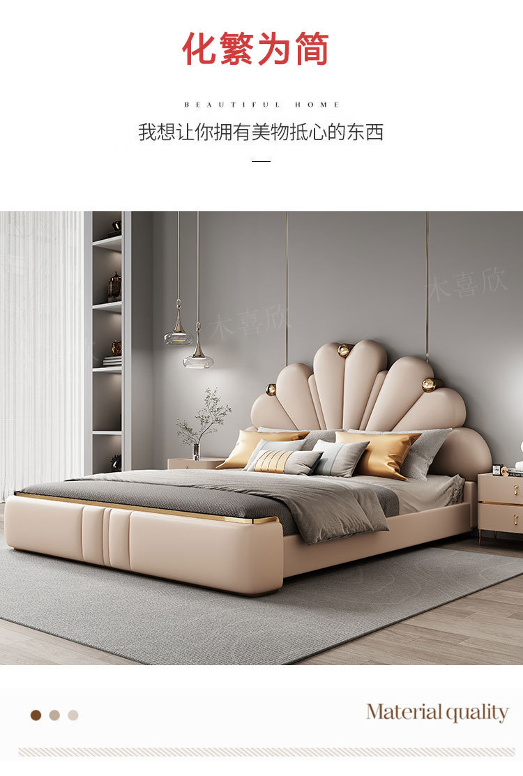 Giường sang trọng nhẹ nhàng kiểu Pháp Giường cánh hoa giường đôi hiện đại tối giản bằng gỗ nguyên khối Phòng ngủ chính giường cỡ Queen Giường cưới Giường da tối giản kiểu Ý