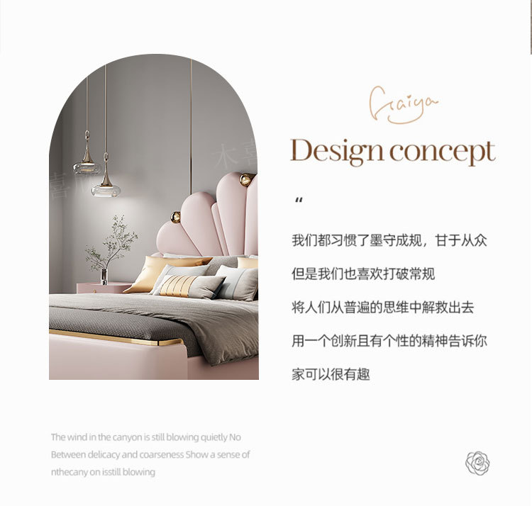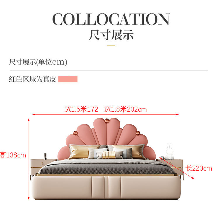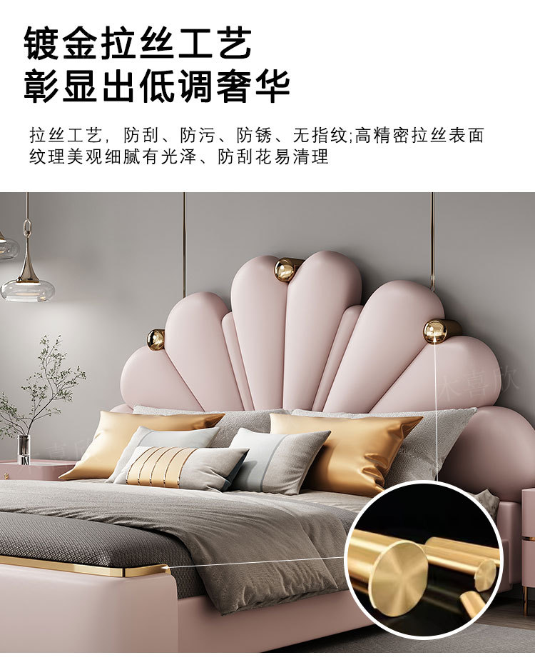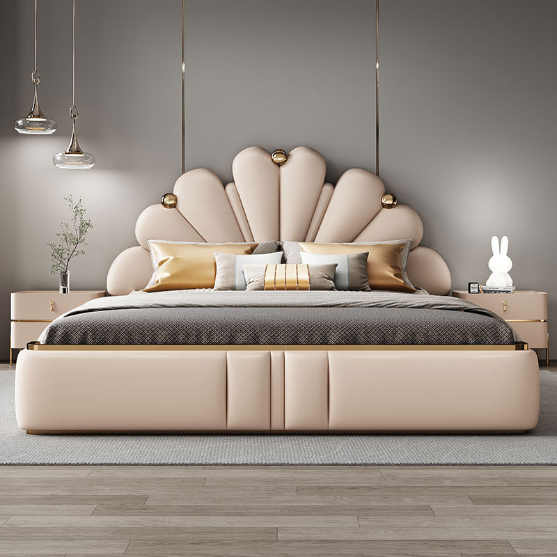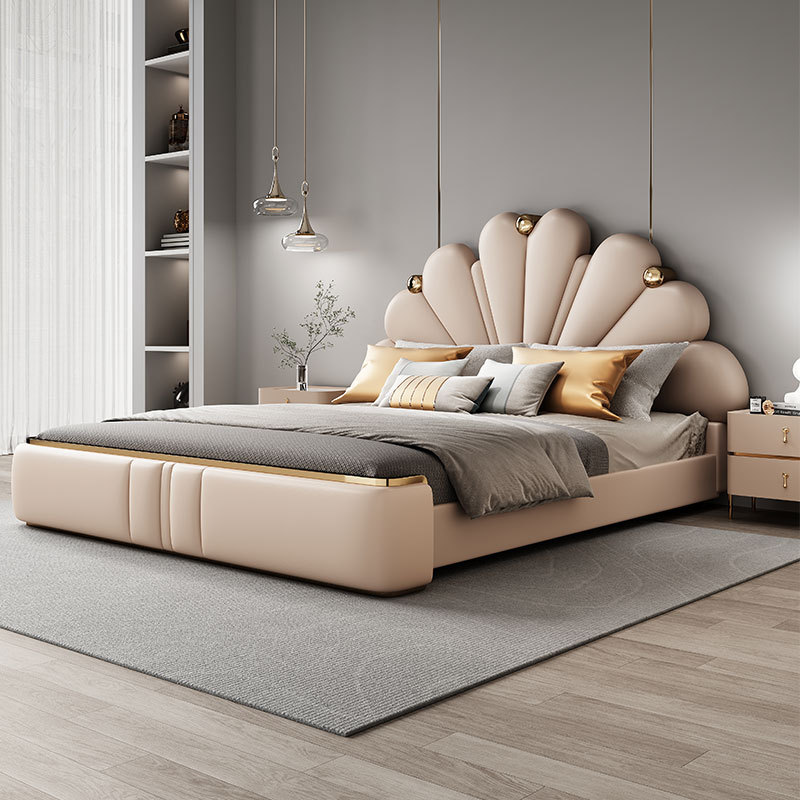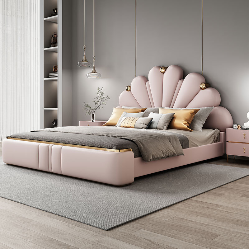 Giường sang trọng nhẹ nhàng kiểu Pháp Giường cánh hoa giường đôi hiện đại tối giản bằng gỗ nguyên khối Phòng ngủ chính giường cỡ Queen Giường cưới Giường da tối giản kiểu Ý