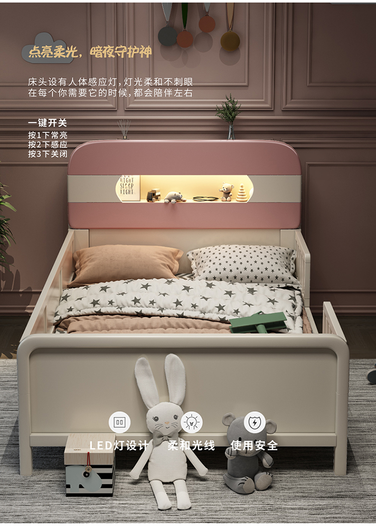 Giường trẻ em bằng gỗ đặc có lan can giường bé trai và bé gái 1,2 mét giường phòng ngủ trẻ em 1,5 mét giường đơn giường nội thất trẻ em