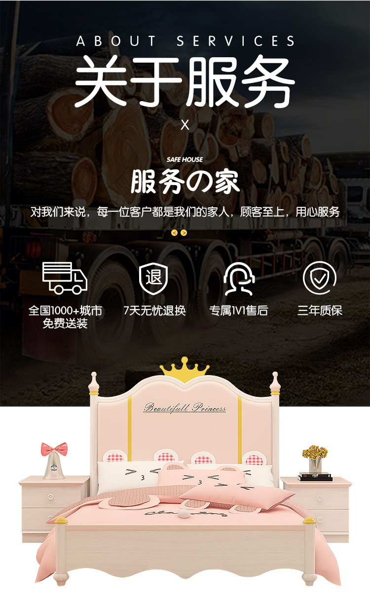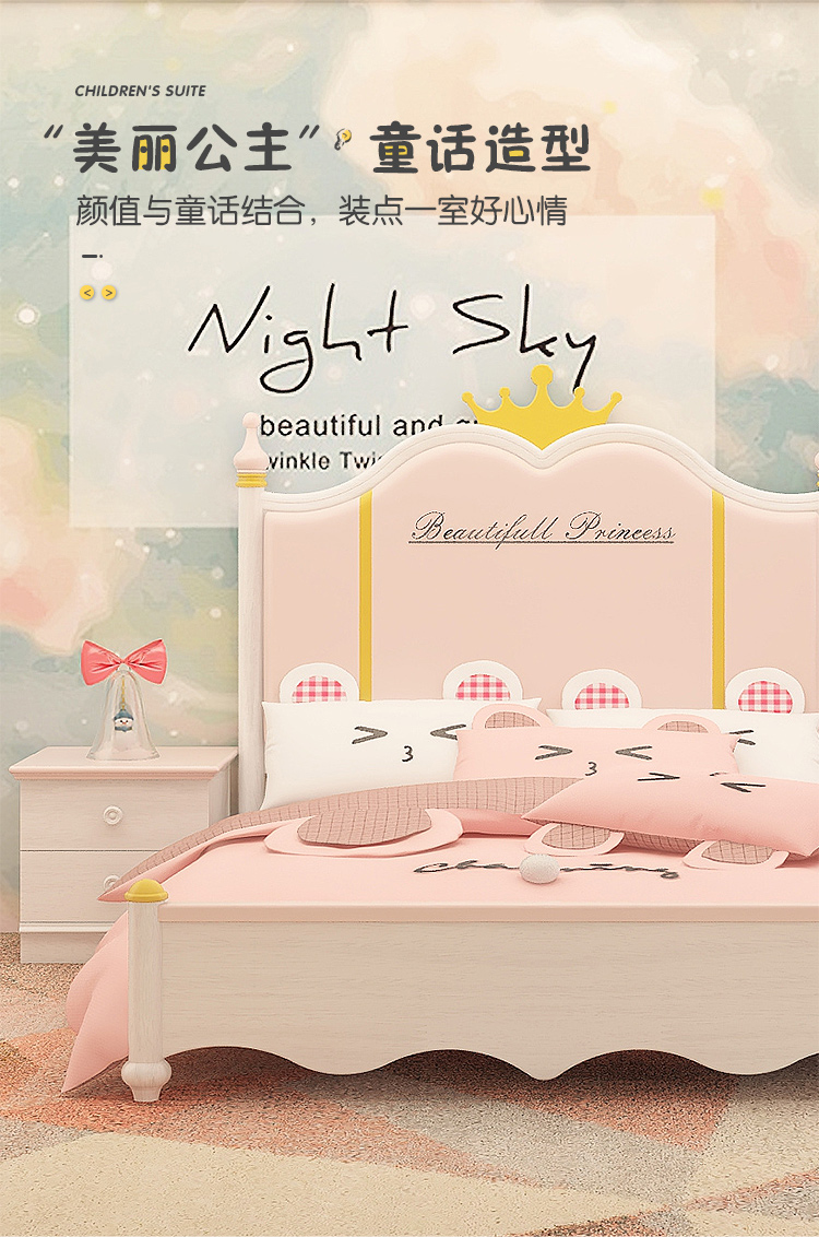 Giường trẻ em bằng gỗ đặc Giường ngủ cô gái công chúa Giường đơn Châu Âu giường đơn cho bé gái phòng trẻ em phòng ngủ kết hợp đồ nội thất bộ