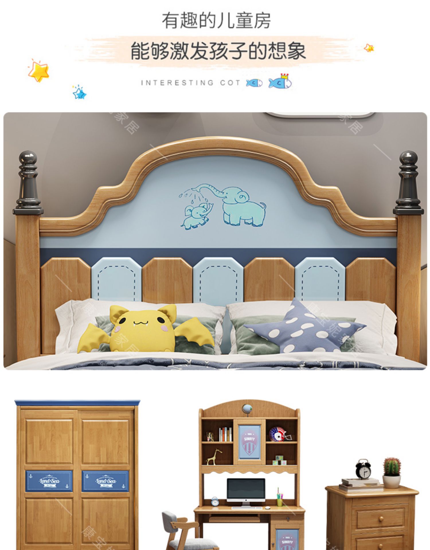 Giường trẻ em bằng gỗ rắn Giường đơn 1,5m thanh niên hiện đại tối giản giường gỗ rắn giường nội thất phòng ngủ cho bé trai