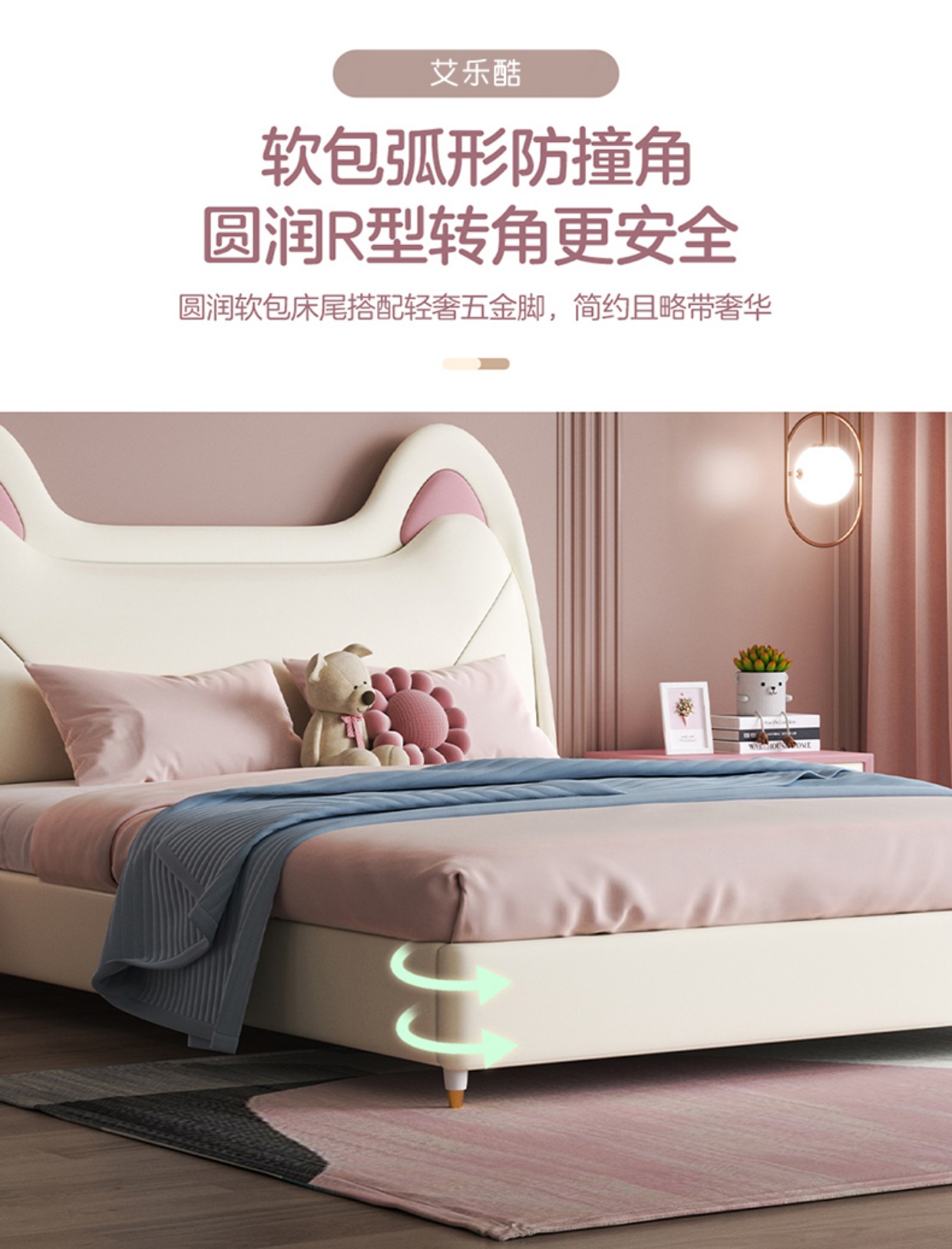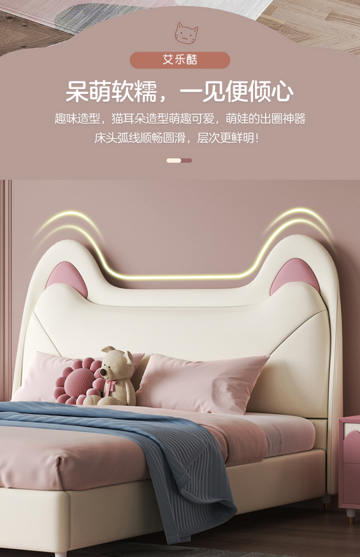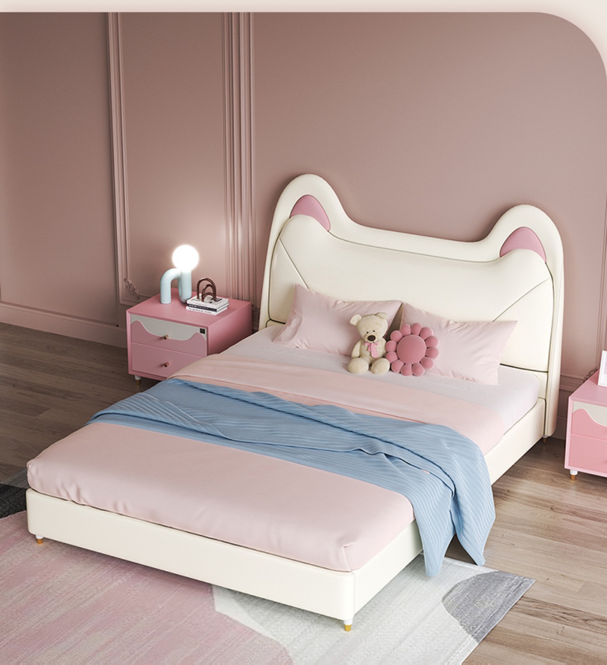 Giường trẻ em cô gái giường công chúa giường màu hồng tai mèo phòng ngủ tối giản hiện đại giường túi mềm Aileku nội thất trẻ em
