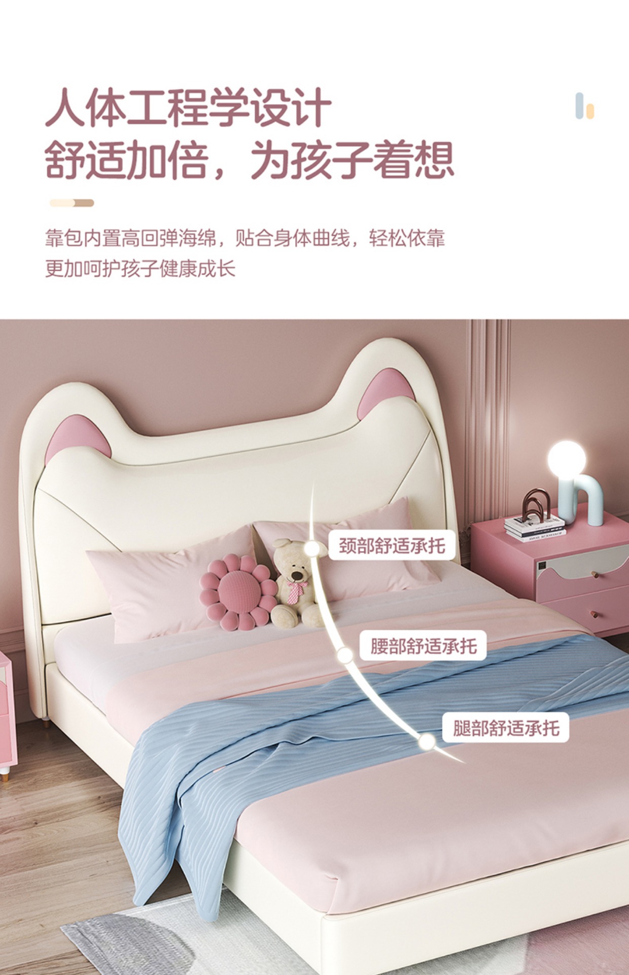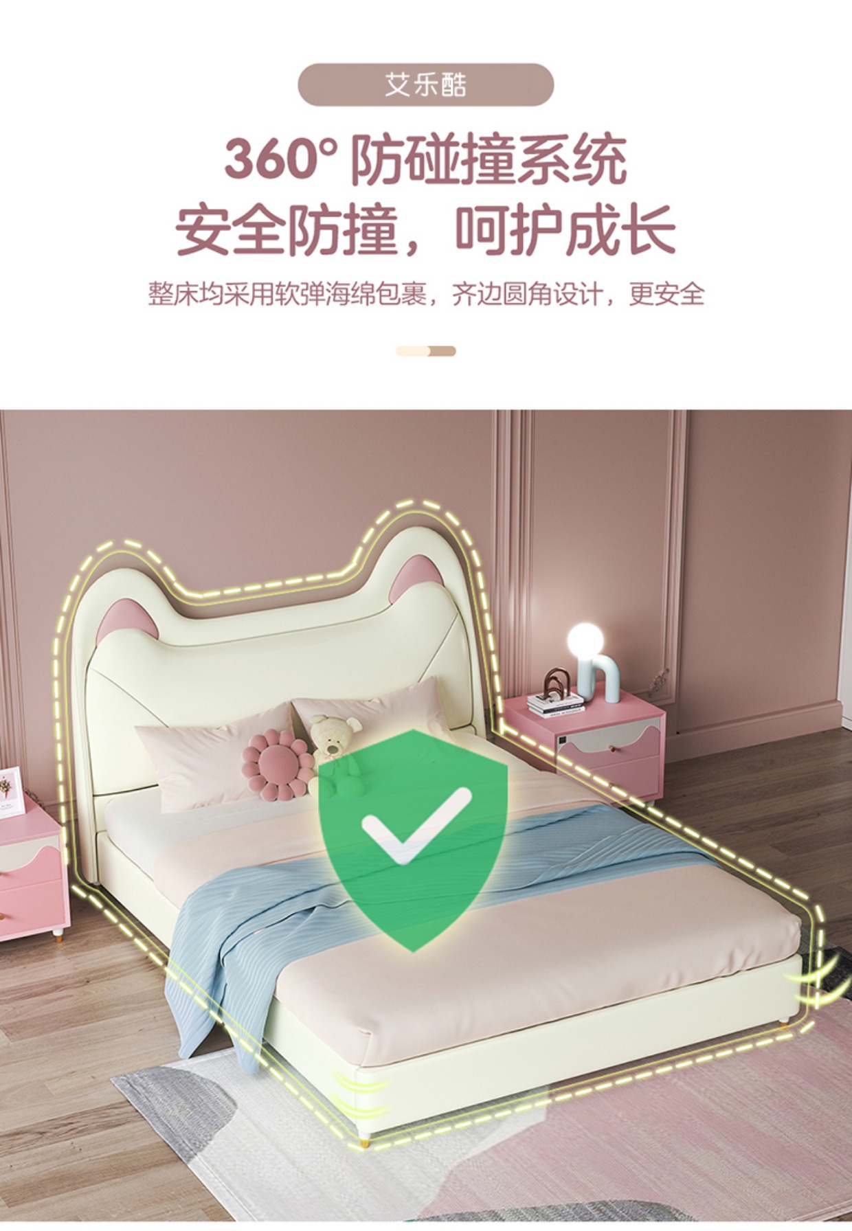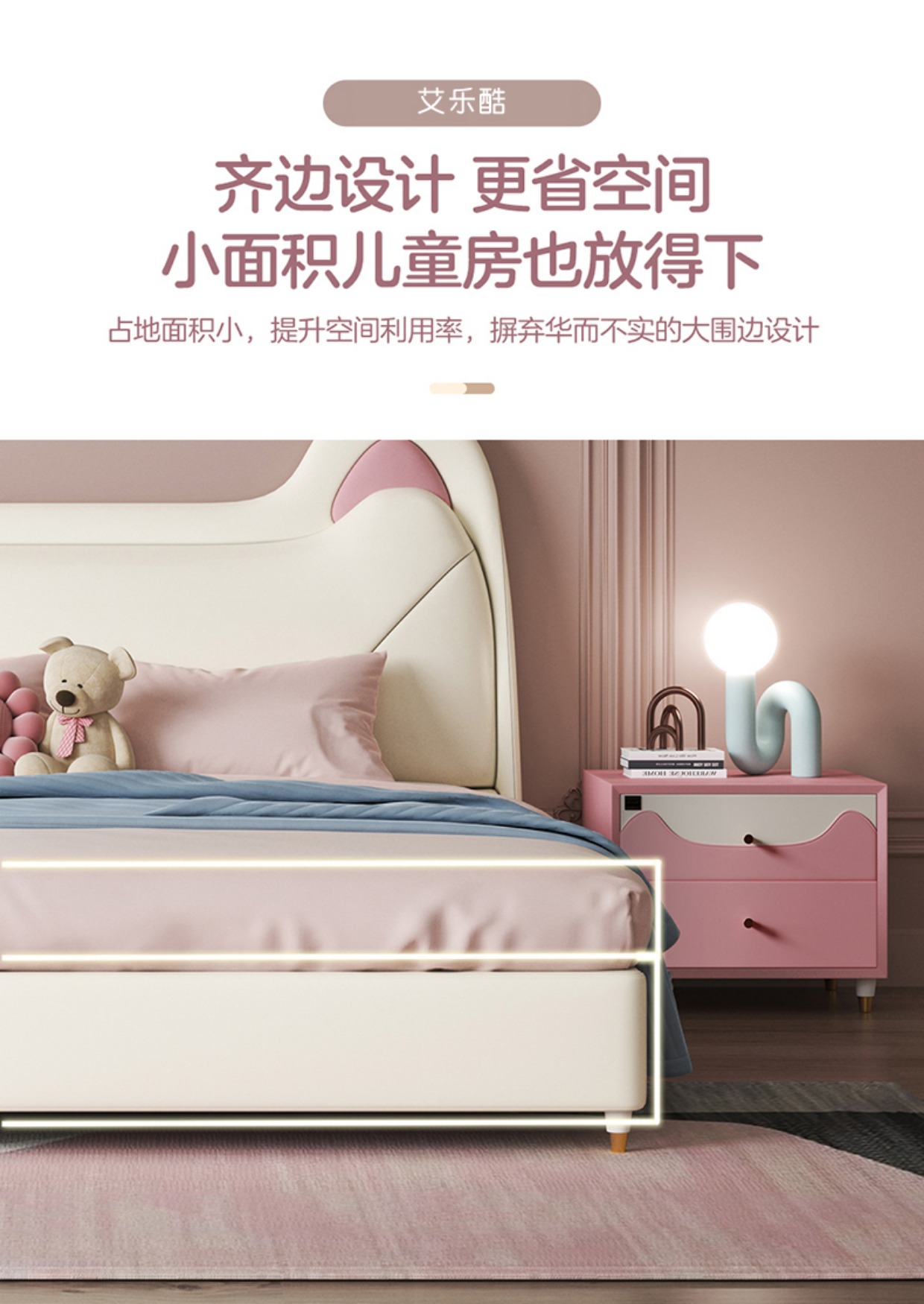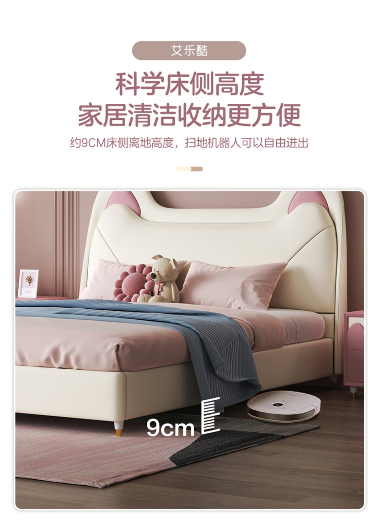 Giường trẻ em cô gái giường công chúa giường màu hồng tai mèo phòng ngủ tối giản hiện đại giường túi mềm Aileku nội thất trẻ em