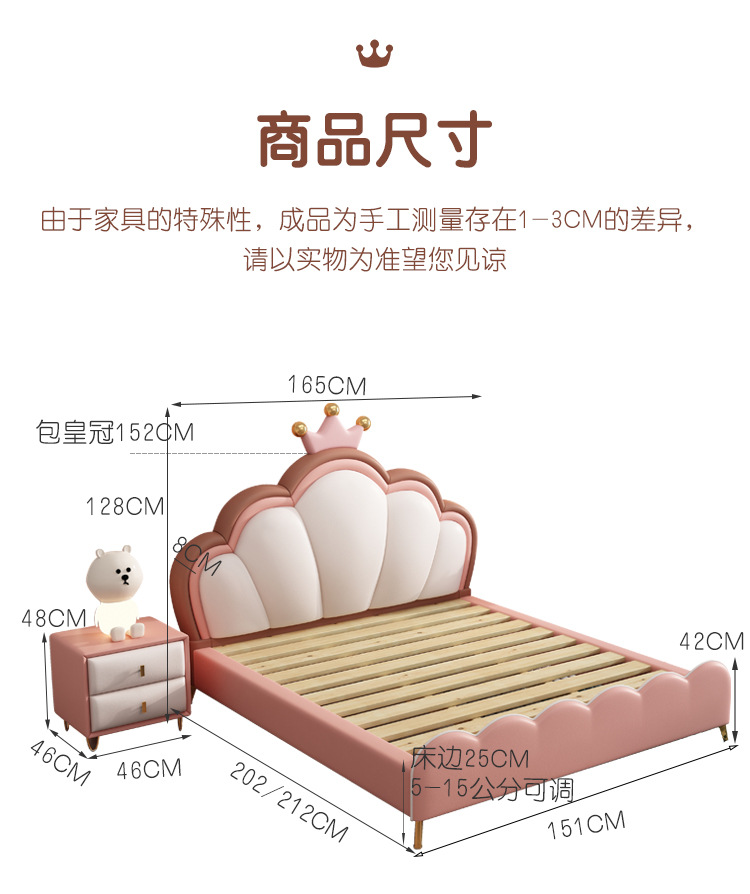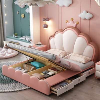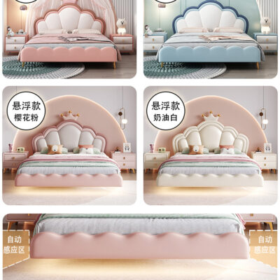 Giường Trẻ Em Tưởng Tượng Cô Gái Vương Miện Giường Công Chúa Thiếu Niên Căn Hộ Nhỏ Ánh Sáng Sang Trọng Đơn Giản Lưu Trữ Ngăn Kéo Bảo Quản Giường Da