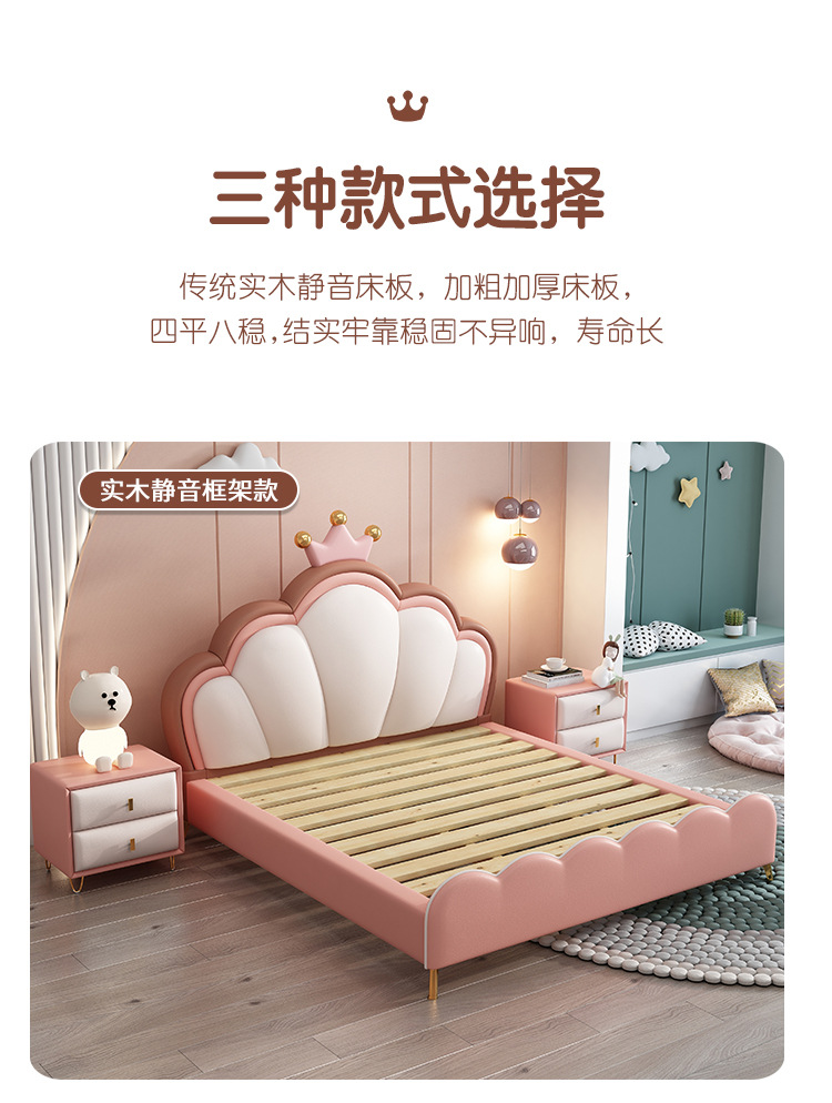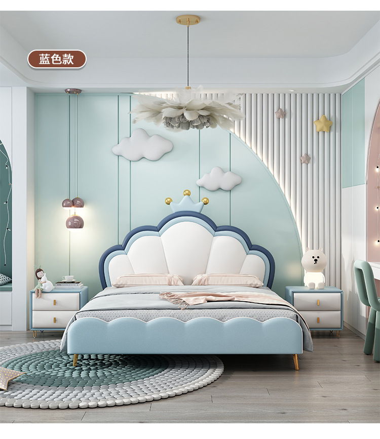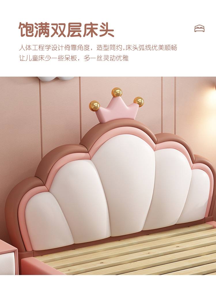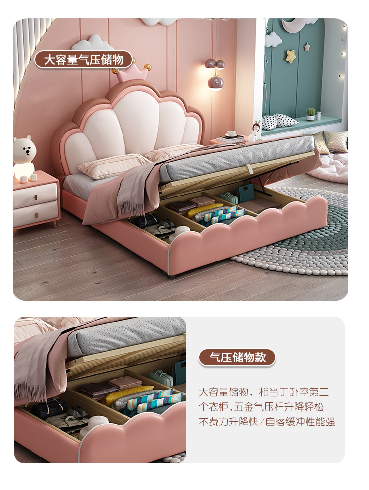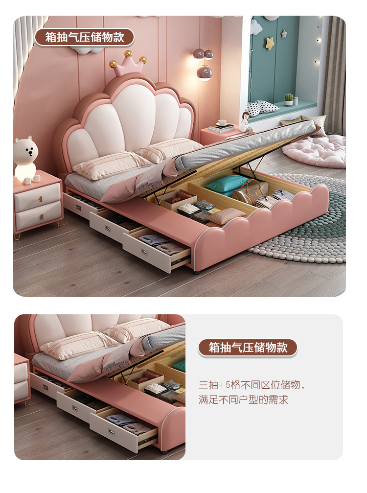 Giường Trẻ Em Tưởng Tượng Cô Gái Vương Miện Giường Công Chúa Thiếu Niên Căn Hộ Nhỏ Ánh Sáng Sang Trọng Đơn Giản Lưu Trữ Ngăn Kéo Bảo Quản Giường Da