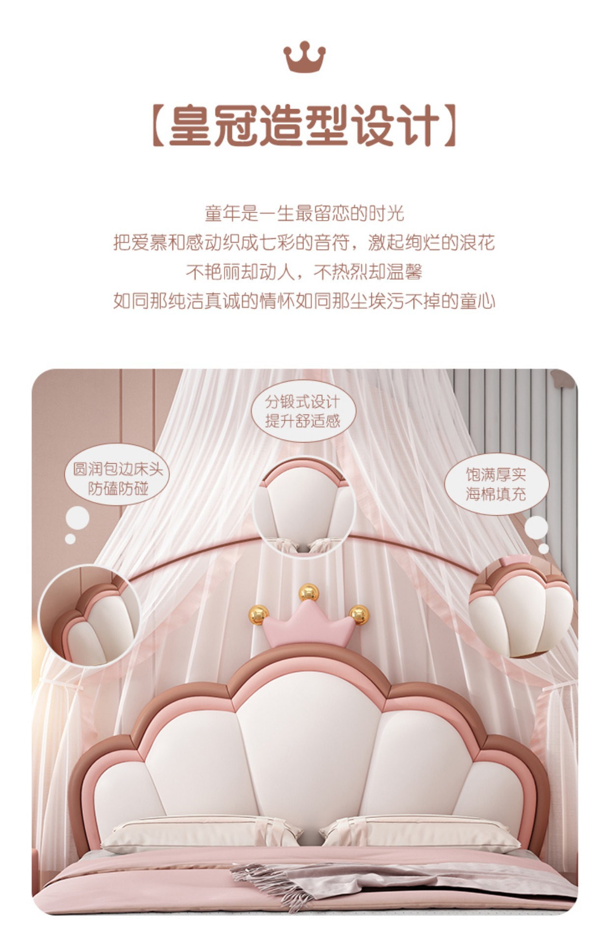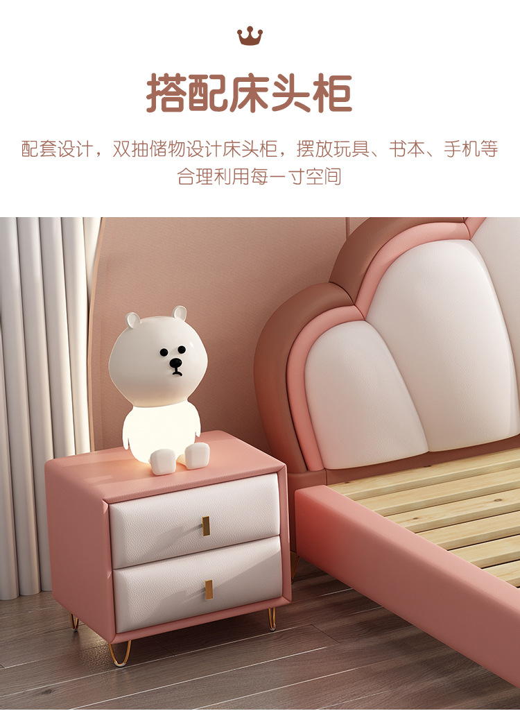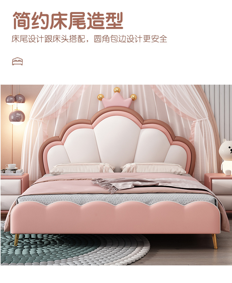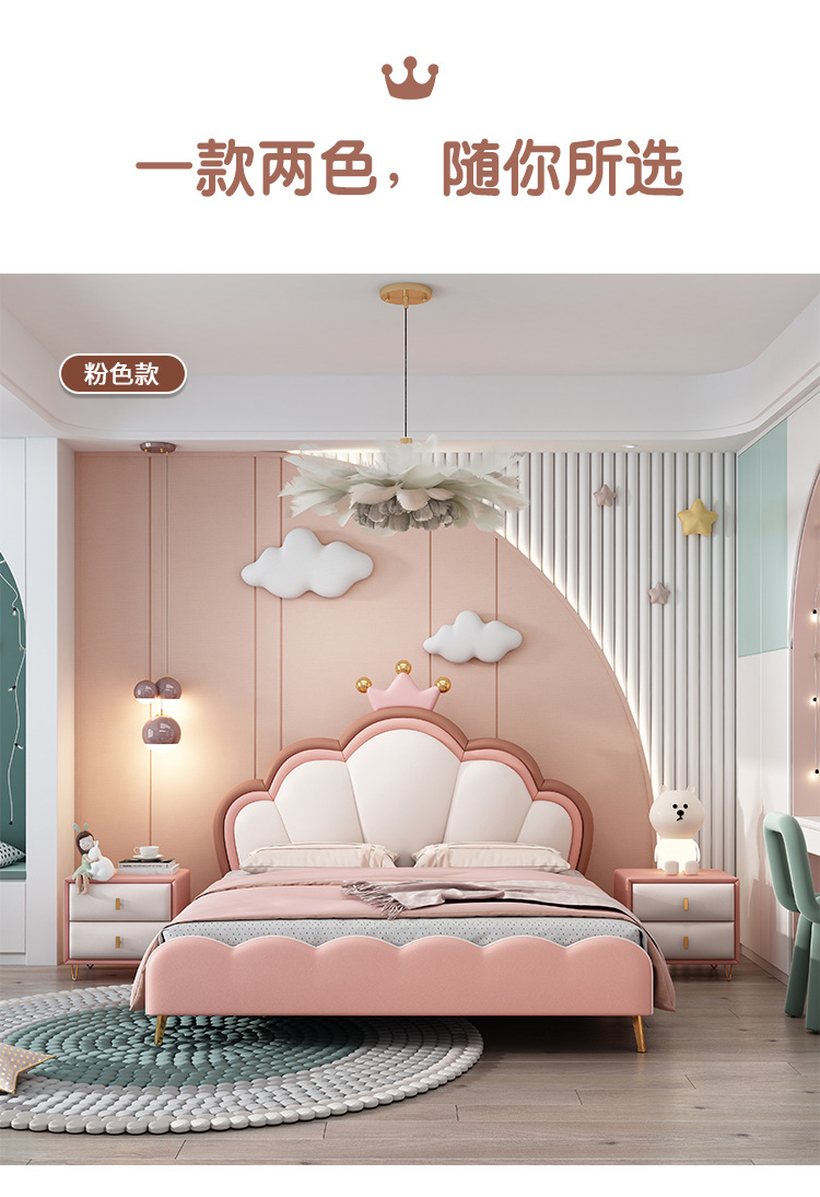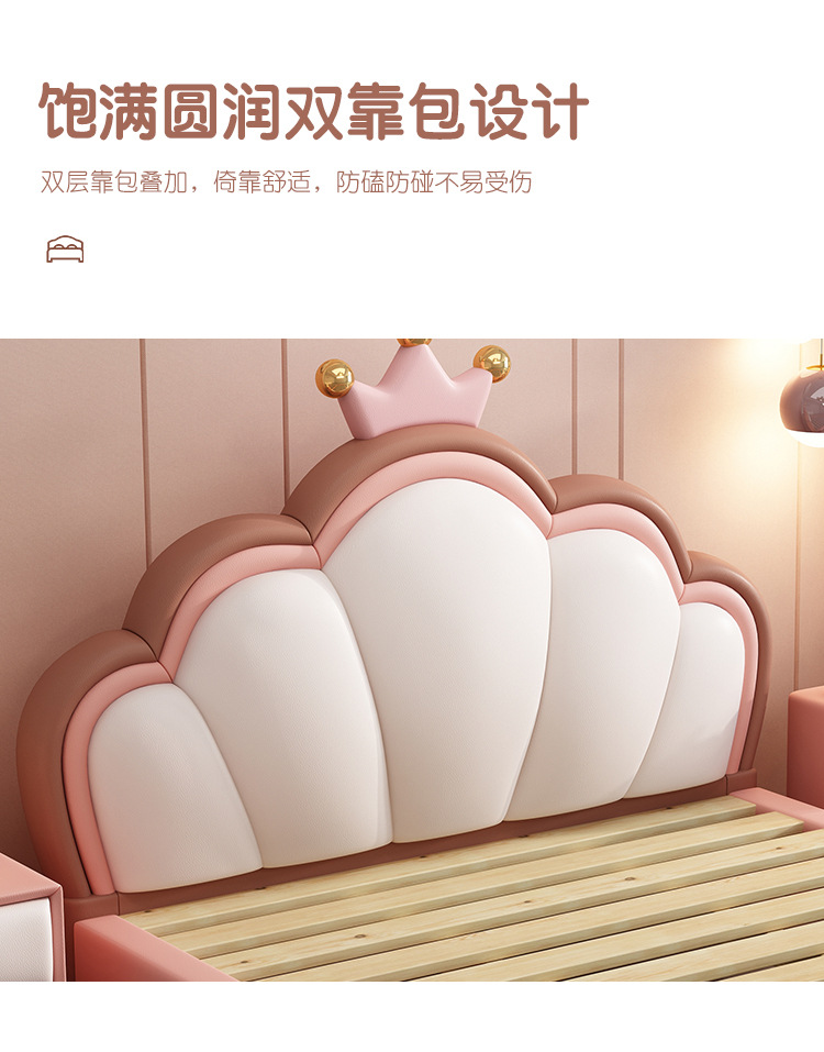 Giường Trẻ Em Tưởng Tượng Cô Gái Vương Miện Giường Công Chúa Thiếu Niên Căn Hộ Nhỏ Ánh Sáng Sang Trọng Đơn Giản Lưu Trữ Ngăn Kéo Bảo Quản Giường Da