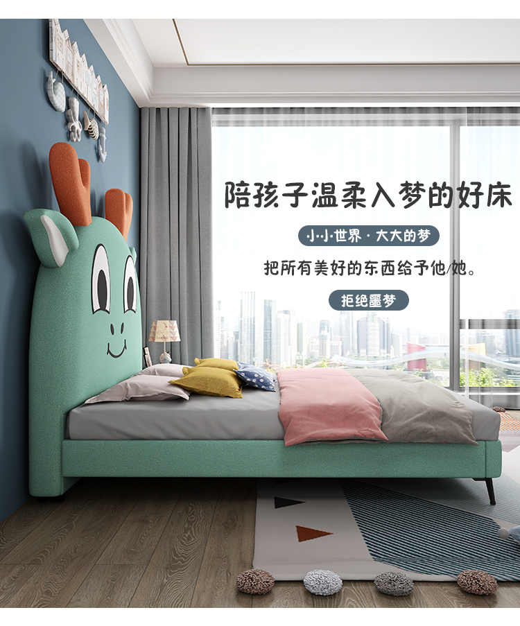 Giường vải công nghệ Chenlong đơn giản và hiện đại 1,5m 1,2m đồ nội thất phòng ngủ trẻ em hoạt hình khung gỗ chắc chắn không giặt