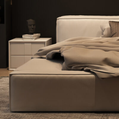 Giường vải tối giản kiểu Ý hiện đại tối giản nhẹ nhàng sang trọng giường đôi phòng ngủ chính trải chiếu tatami giường trải chiếu từ trần đến sàn vải kỹ thuật Giường kiểu Nhật