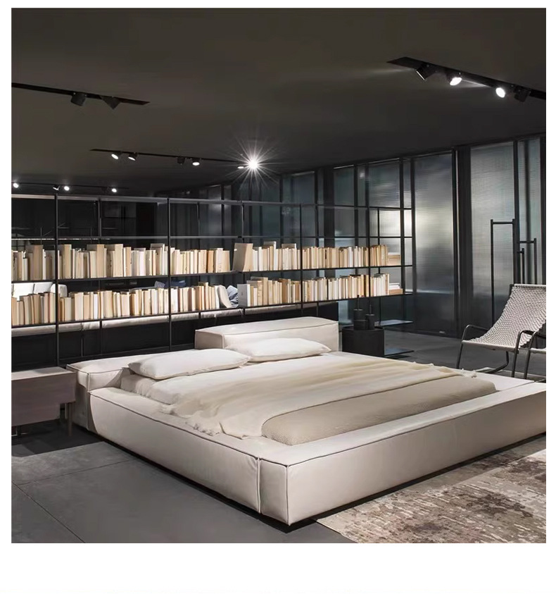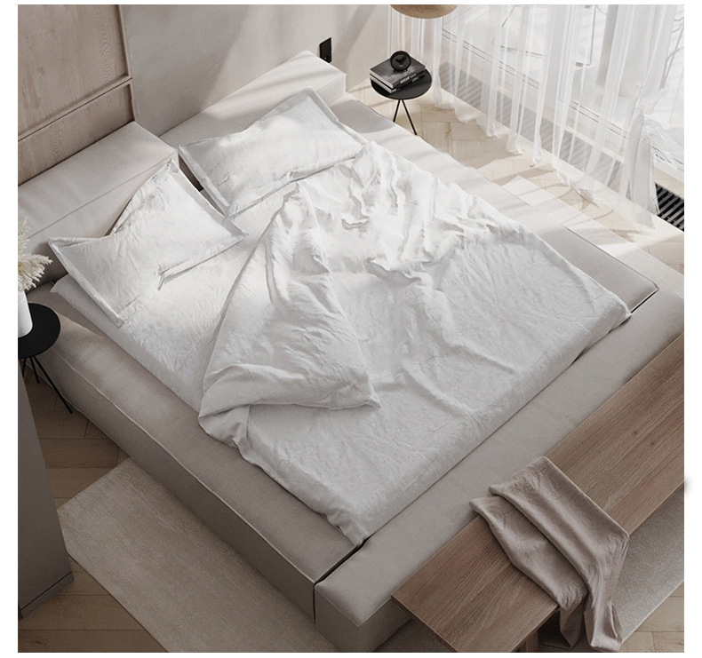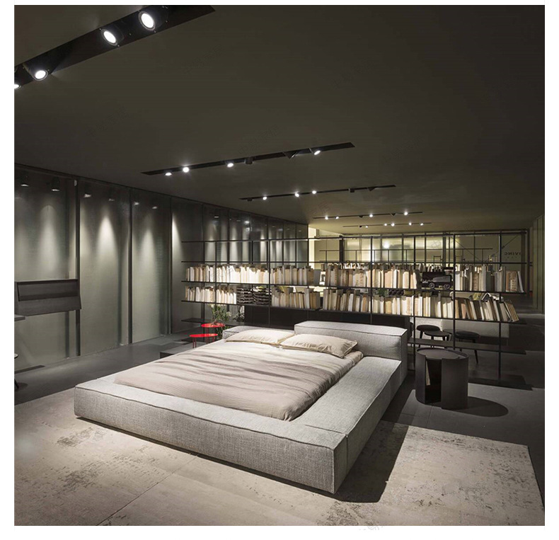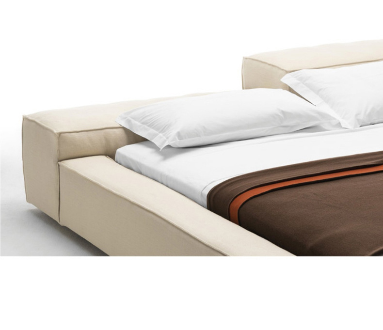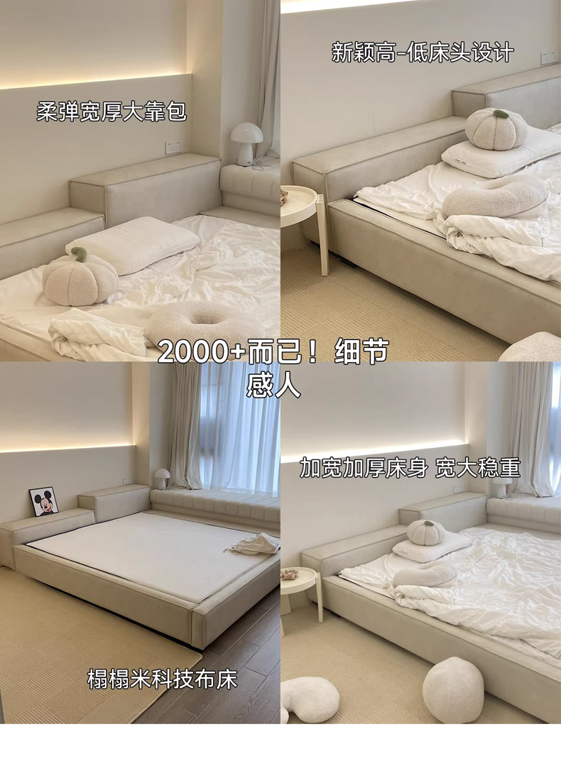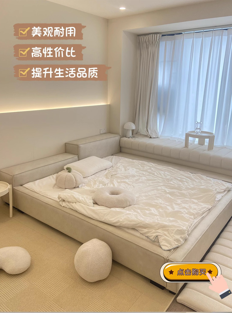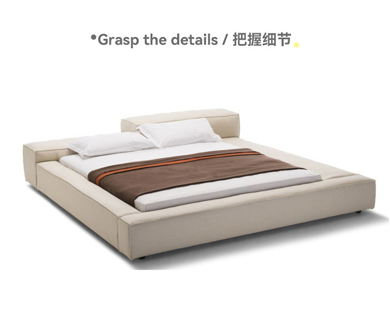 Giường vải tối giản kiểu Ý hiện đại tối giản nhẹ nhàng sang trọng giường đôi phòng ngủ chính trải chiếu tatami giường trải chiếu từ trần đến sàn vải kỹ thuật Giường kiểu Nhật