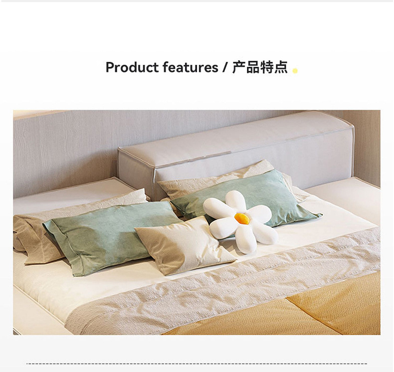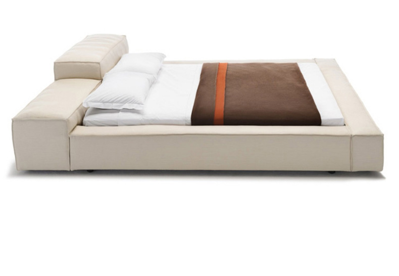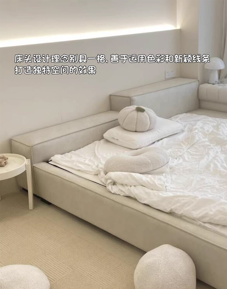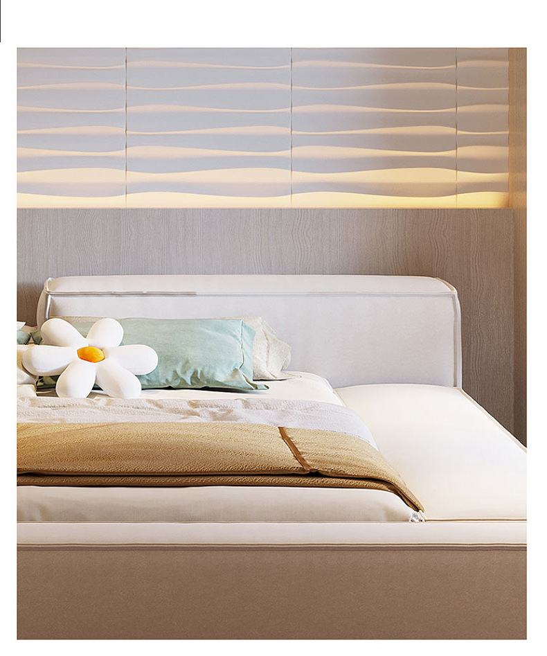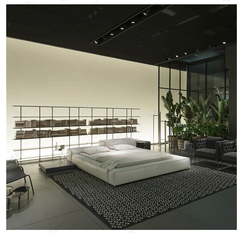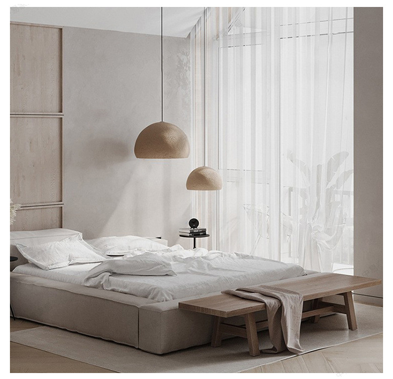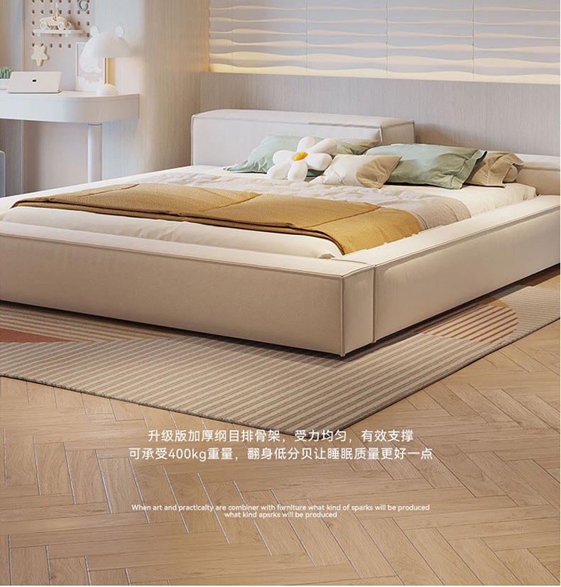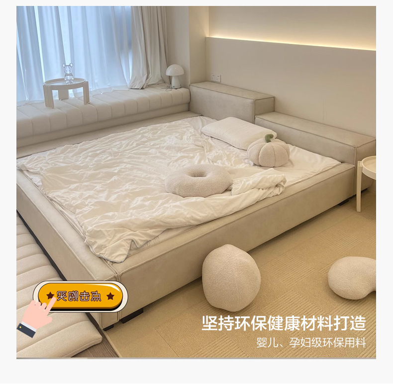 Giường vải tối giản kiểu Ý hiện đại tối giản nhẹ nhàng sang trọng giường đôi phòng ngủ chính trải chiếu tatami giường trải chiếu từ trần đến sàn vải kỹ thuật Giường kiểu Nhật