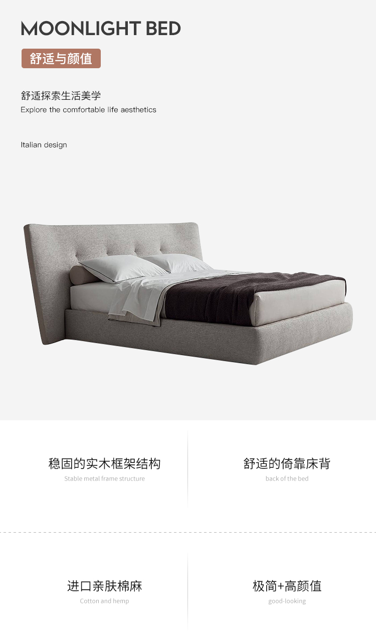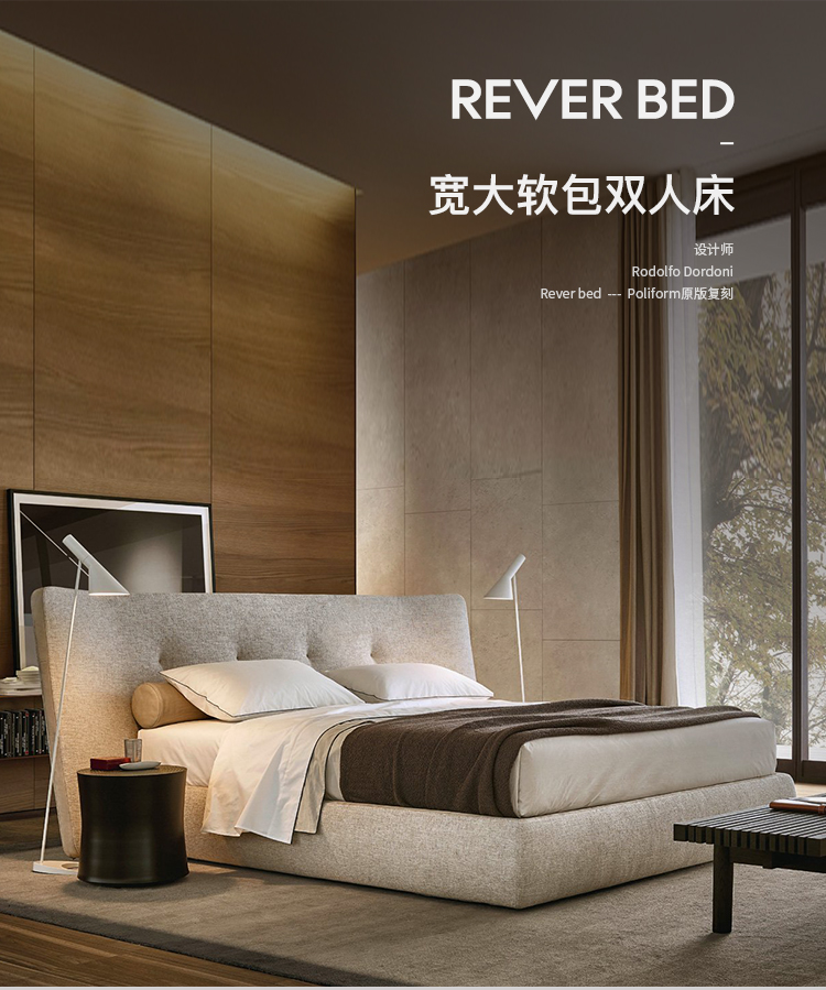 Giường vải tối giản kiểu Ý Poliform rever giường đôi biệt thự mẫu nhà chính phòng ngủ nhà thiết kế nội thất