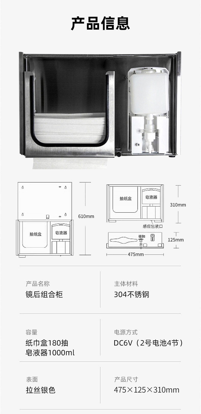 Sản phẩm nổi bật với các tính năng: GJU8 Hộp đựng khăn tay bằng thép không gỉ Hộp đựng xà phòng phía sau tủ gương ẩn tủ gương cảm ứng máy khử trùng tay ẩn khăn giấy. Quý khách có nhu cầu mua Máy rửa tay nhập khẩu vui lòng liên hệ với chúng tôi để được tư vấn hỗ trợ. Dịch vụ mua hàng Trung Quốc sẽ hỗ trợ quý khách mua hàng từ nhà cung cấp và giao tới tận tay quý khách hàng..