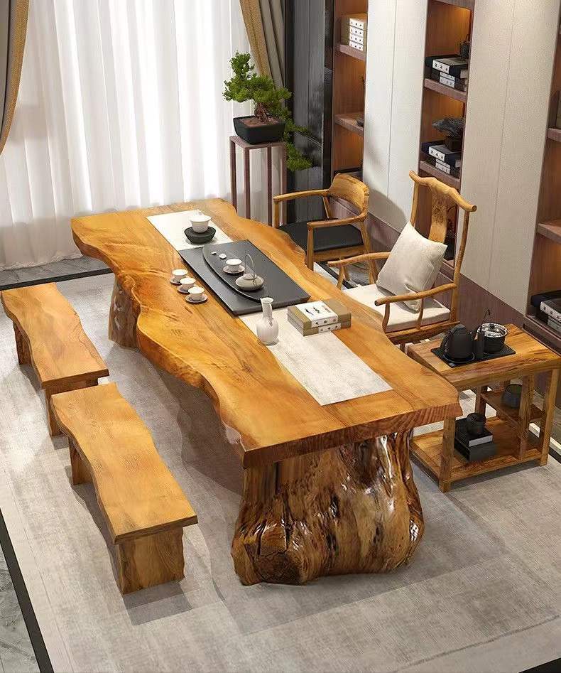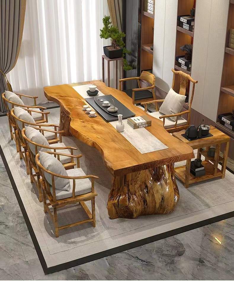 Gỗ Chắc Chắn Bộ Bàn Trà Lớn Bảng Gỗ Mới Trung Quốc Phong Cách Kung Fu Bàn Trà Phòng Khách Bàn Trà Thiền Bàn Ghế Kết Hợp