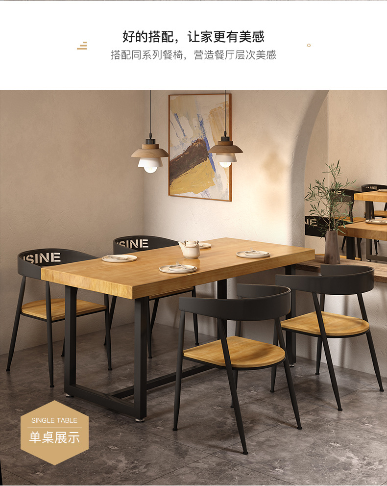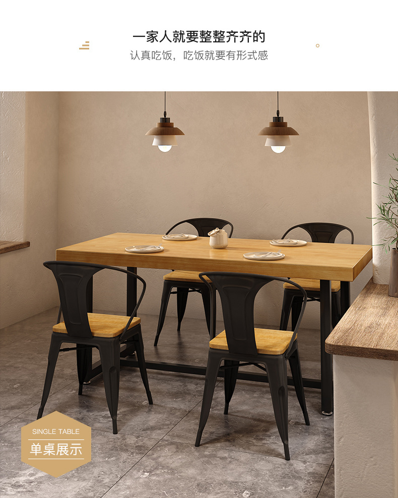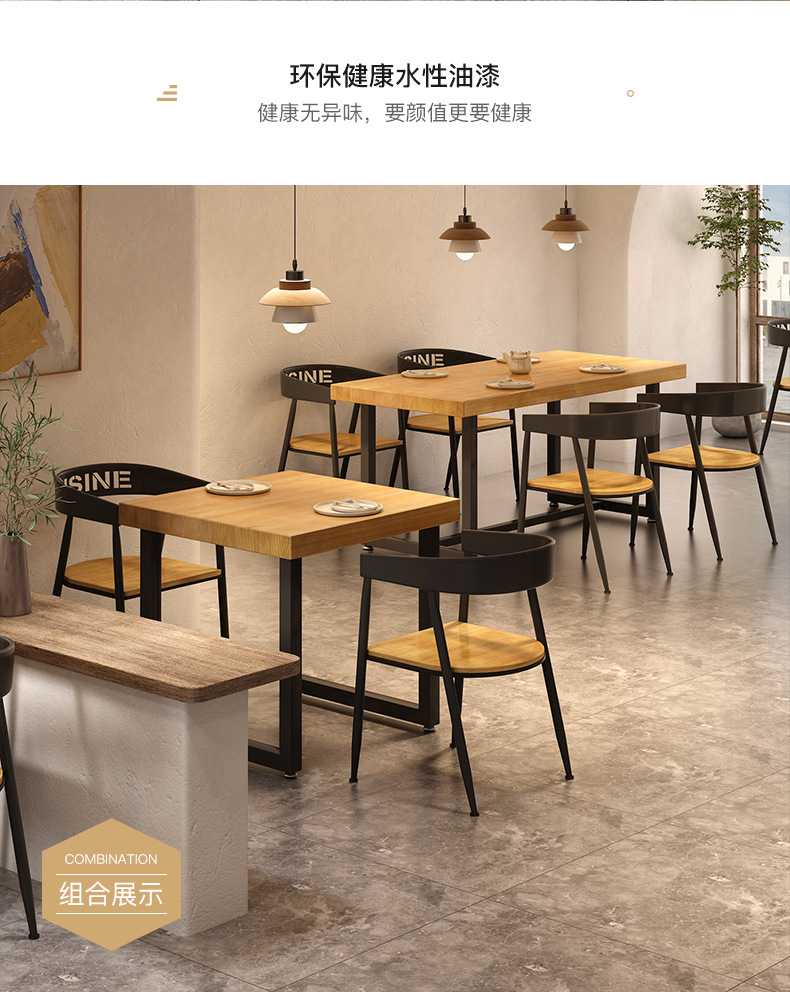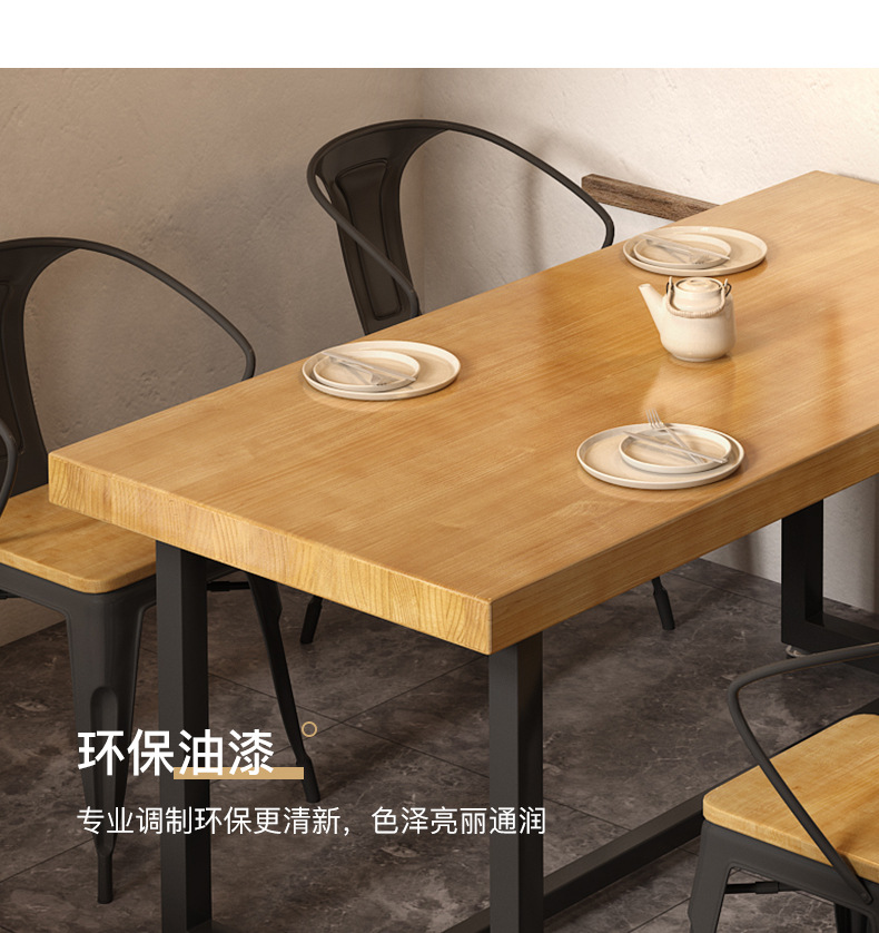 Gỗ đặc sắt rèn nhân viên nhà hàng hình chữ nhật nhà hàng thức ăn nhanh bàn ghế ăn kết hợp thịt nướng quán trà sữa bàn thương mại 1035