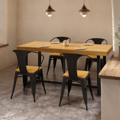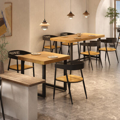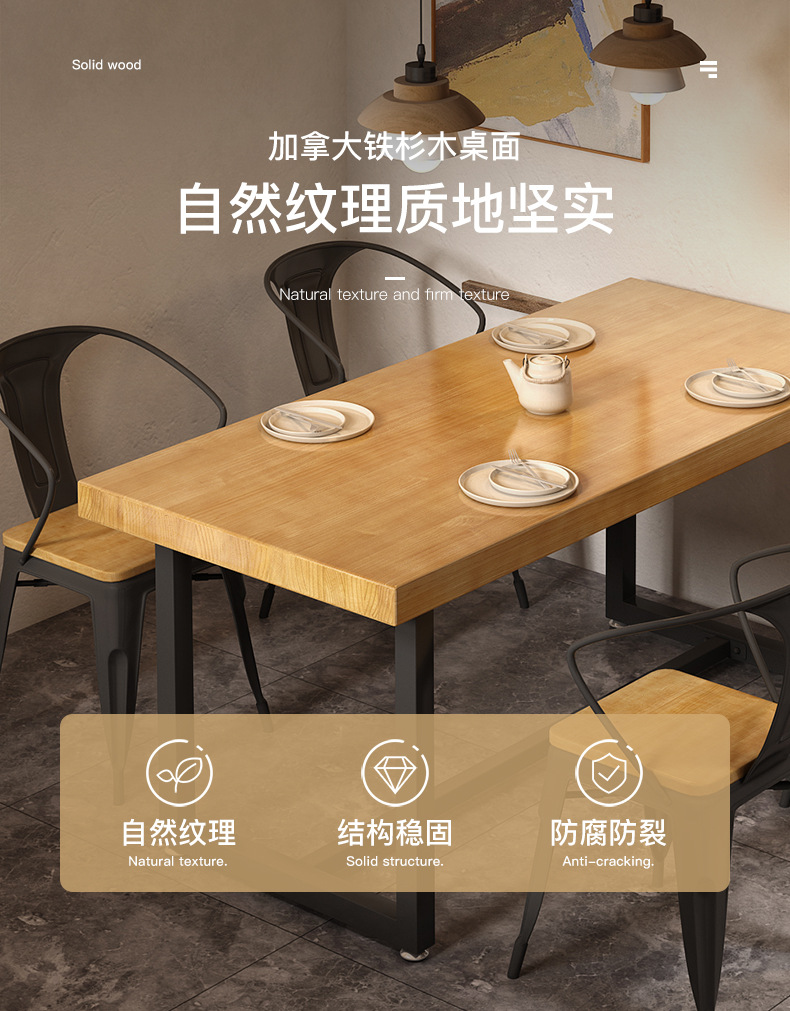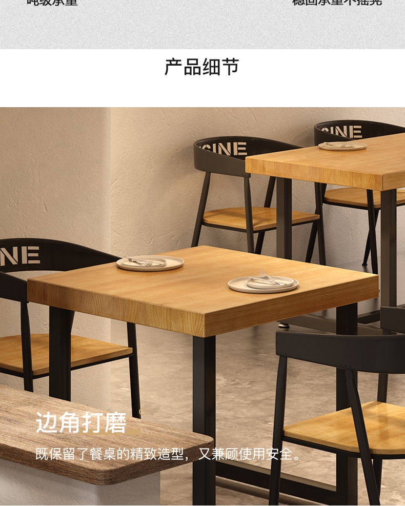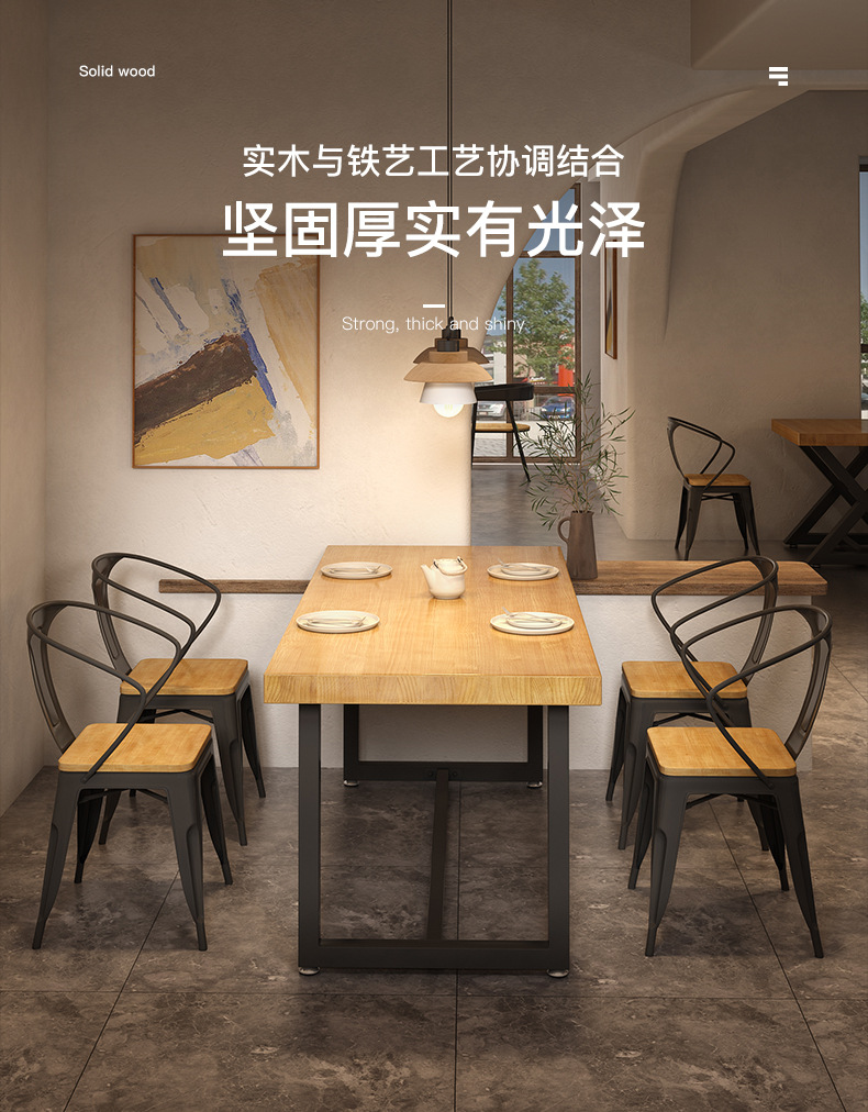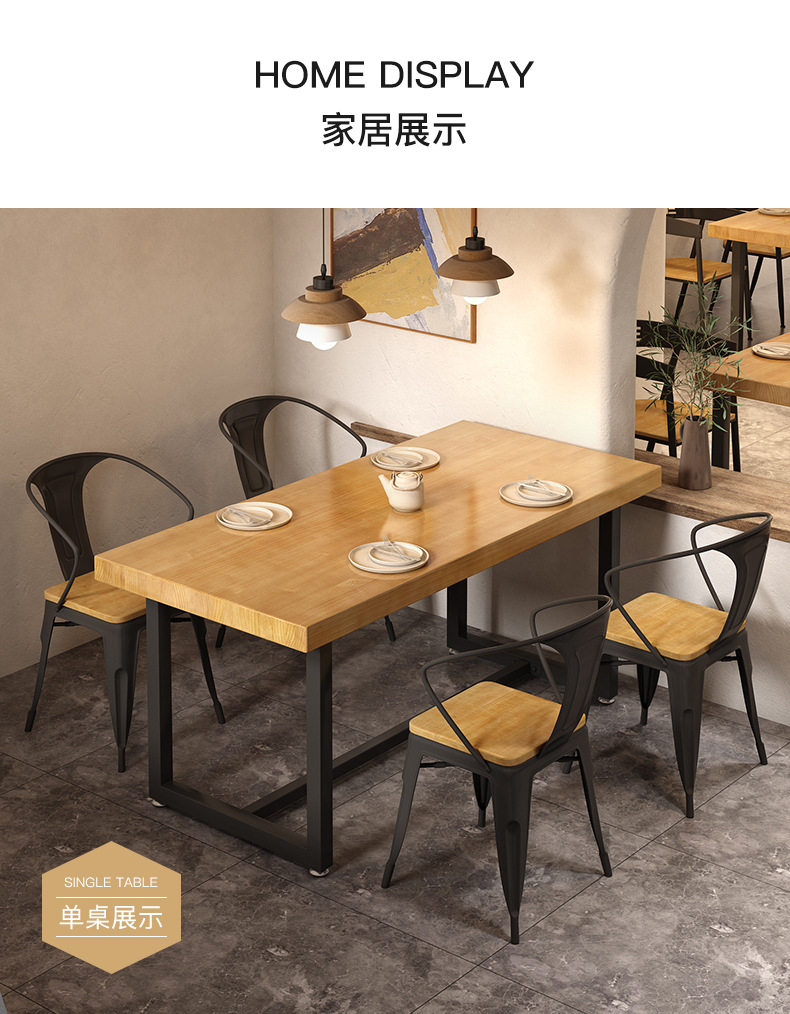 Gỗ đặc sắt rèn nhân viên nhà hàng hình chữ nhật nhà hàng thức ăn nhanh bàn ghế ăn kết hợp thịt nướng quán trà sữa bàn thương mại 1035