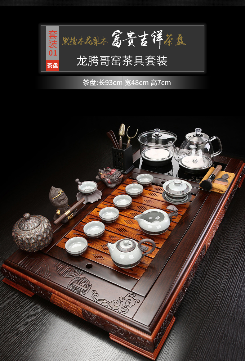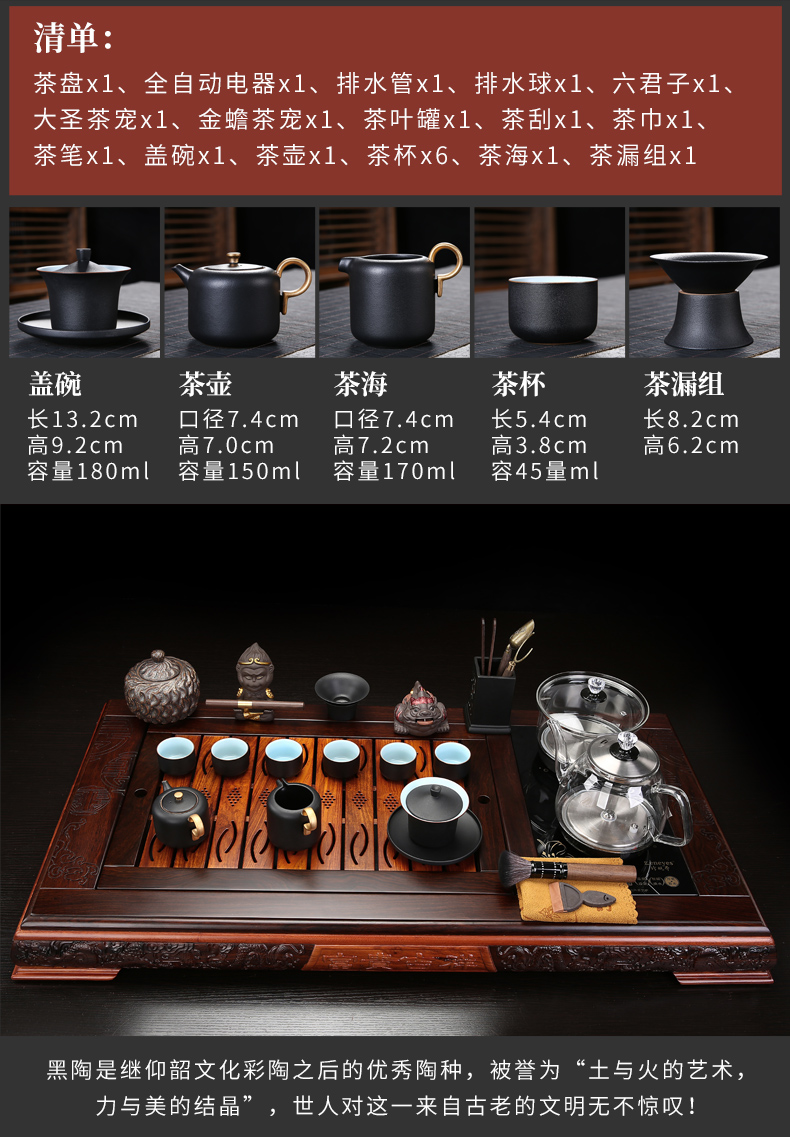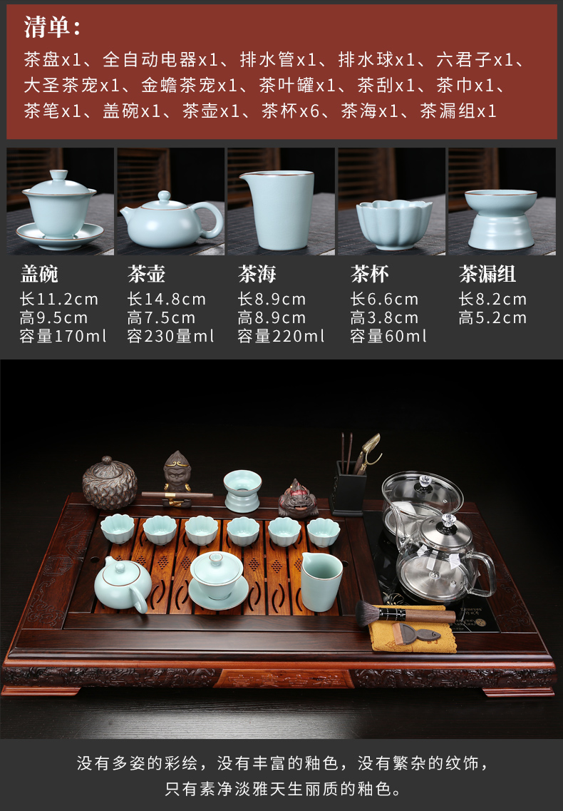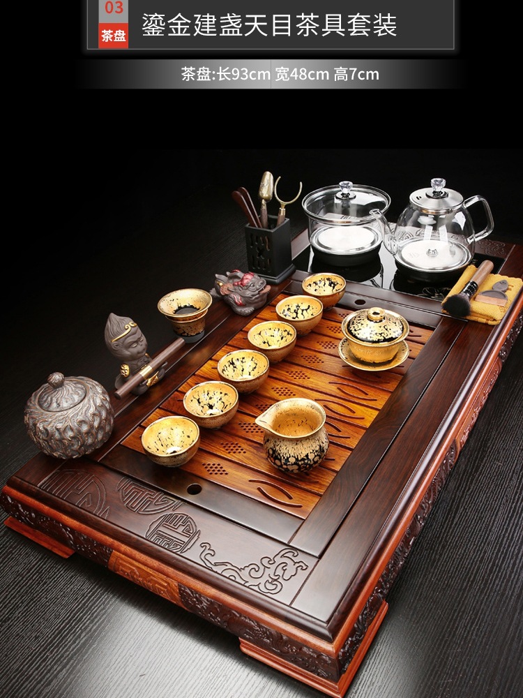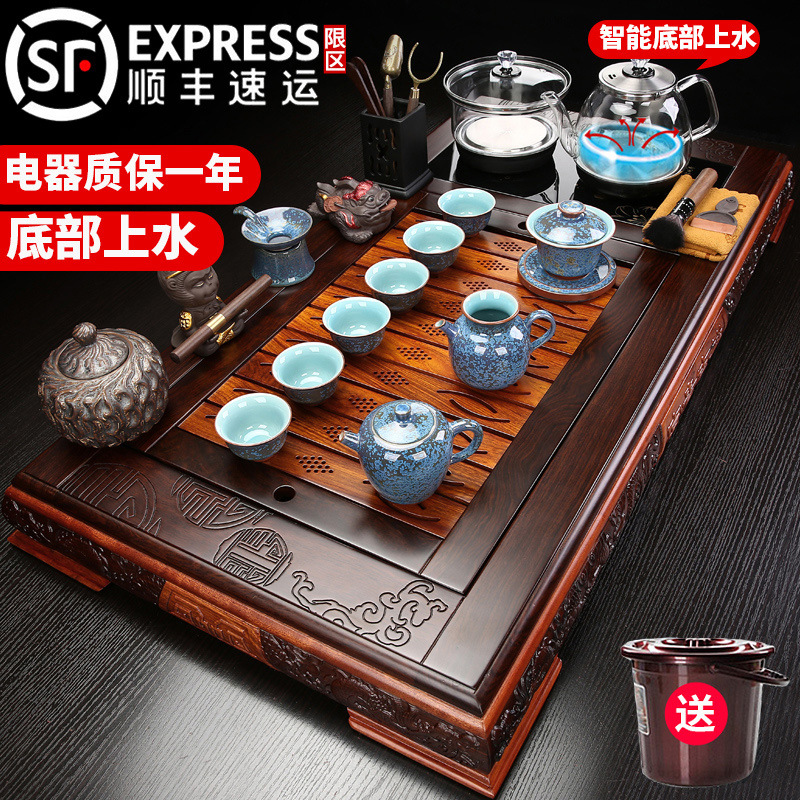 Gỗ mun lê khay trà gỗ kung fu bộ ấm trà hộ gia đình nguyên bộ ấm đun nước thông minh hoàn toàn tự động tích hợp bàn trà