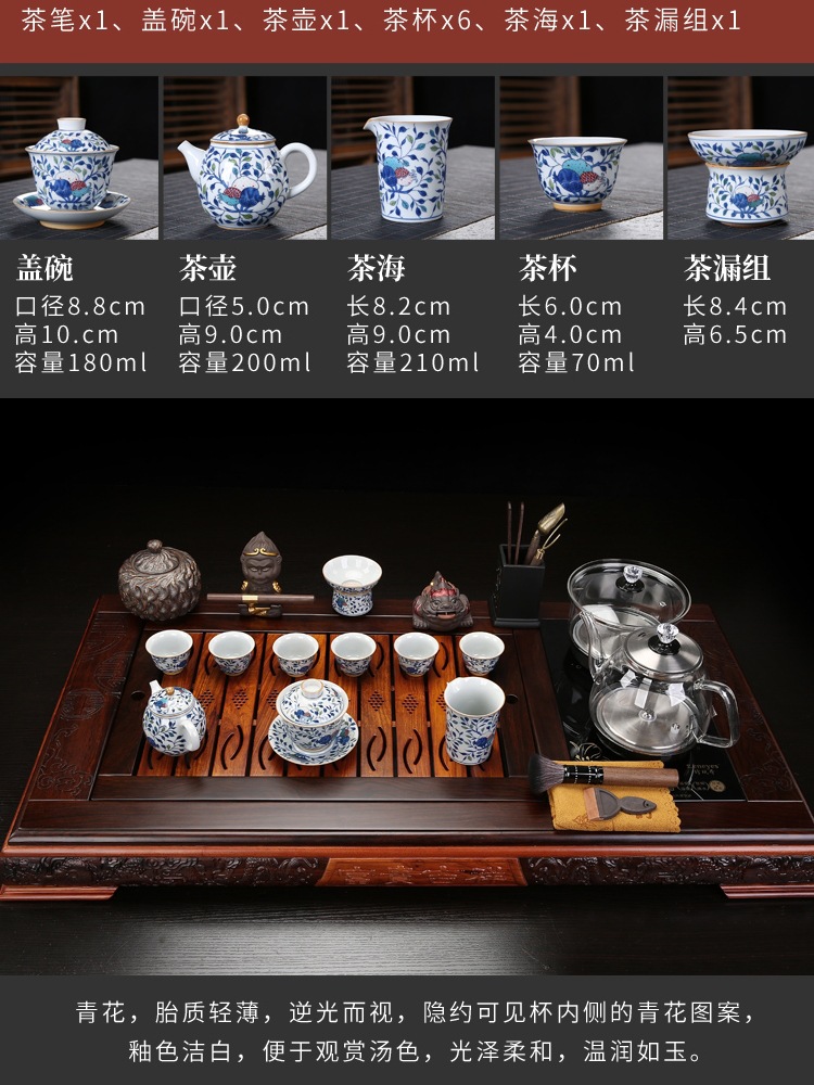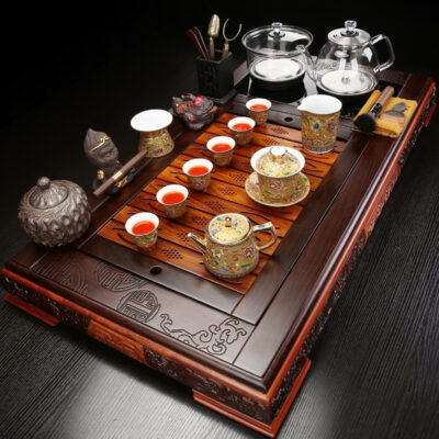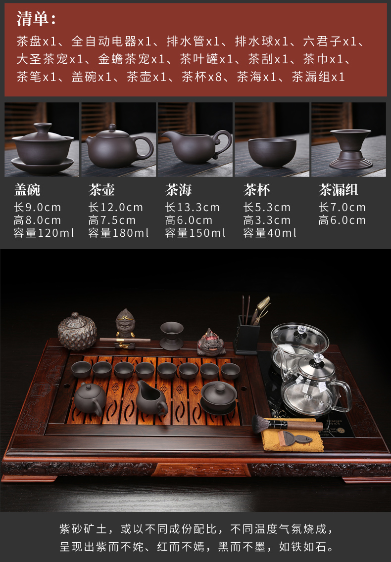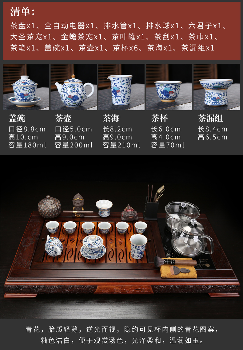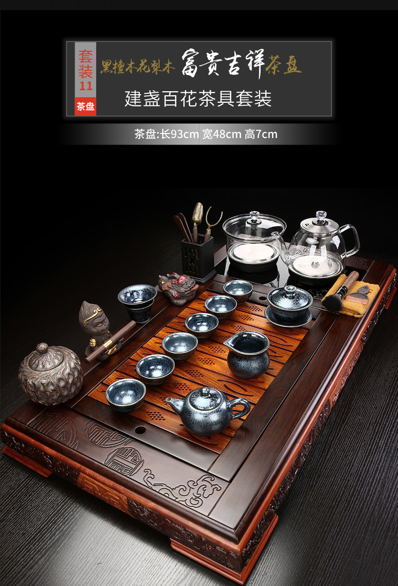 Gỗ mun lê khay trà gỗ kung fu bộ ấm trà hộ gia đình nguyên bộ ấm đun nước thông minh hoàn toàn tự động tích hợp bàn trà