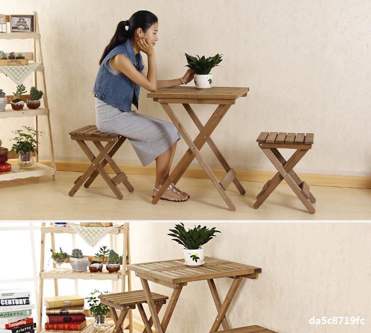 Gỗ nguyên khối bàn gấp căn hộ nhỏ bàn ăn sân ban công bàn ghế nhỏ bàn trà đơn giản bàn vuông phong cách cổ điển bàn cà phê