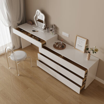 Gỗ nguyên khối bàn trang điểm xô tủ tích hợp kem phong cách bàn trang điểm kính thiên văn phòng ngủ tối giản hiện đại đầu giường tủ lưu trữ sơn