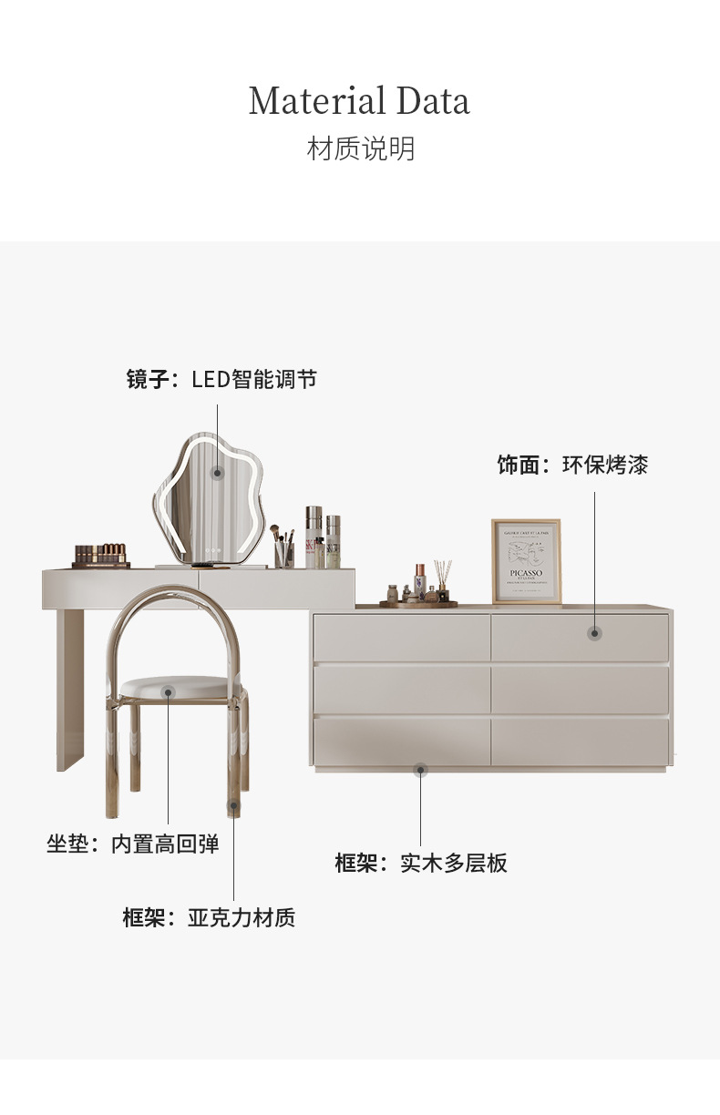 Gỗ nguyên khối bàn trang điểm xô tủ tích hợp kem phong cách bàn trang điểm kính thiên văn phòng ngủ tối giản hiện đại đầu giường tủ lưu trữ sơn