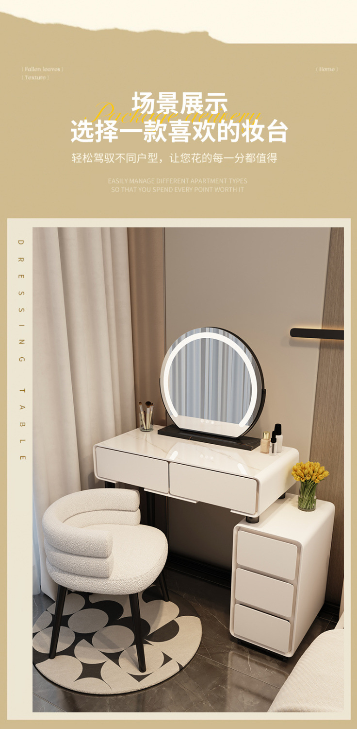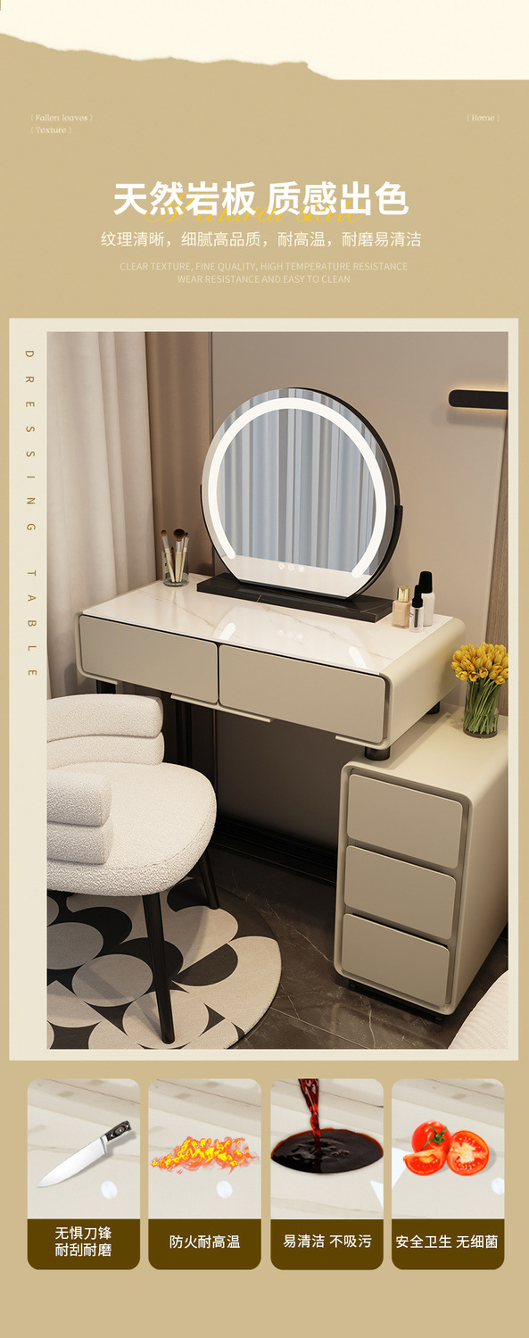 Gỗ nguyên khối căn hộ nhỏ bàn trang điểm phòng ngủ hiện đại tối giản ánh sáng sang trọng bảng đá bàn trang điểm tích hợp bàn trang điểm