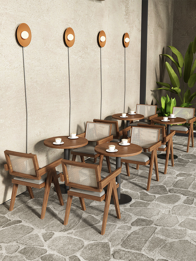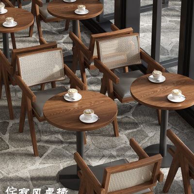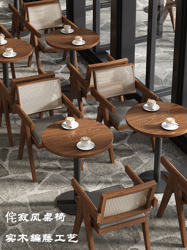 Gỗ nguyên khối mây K ghế quán trà sữa cafe nhà hàng phương tây ăn uống bình dân thanh đàm phán bàn ghế kết hợp phong cách Đông Nam Á