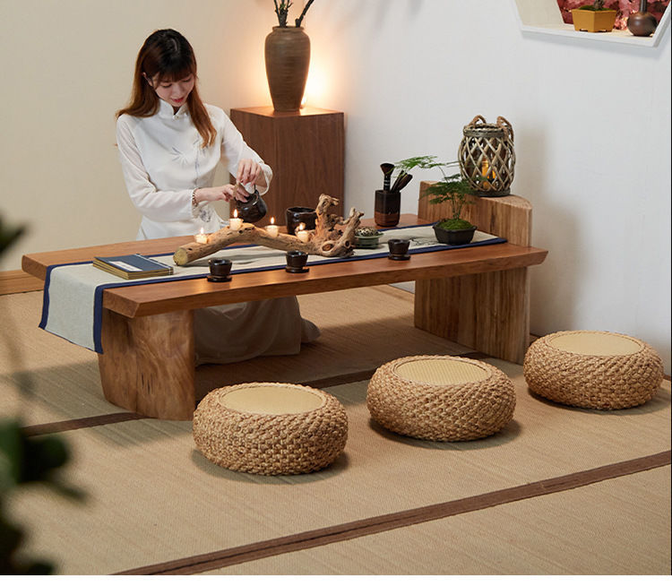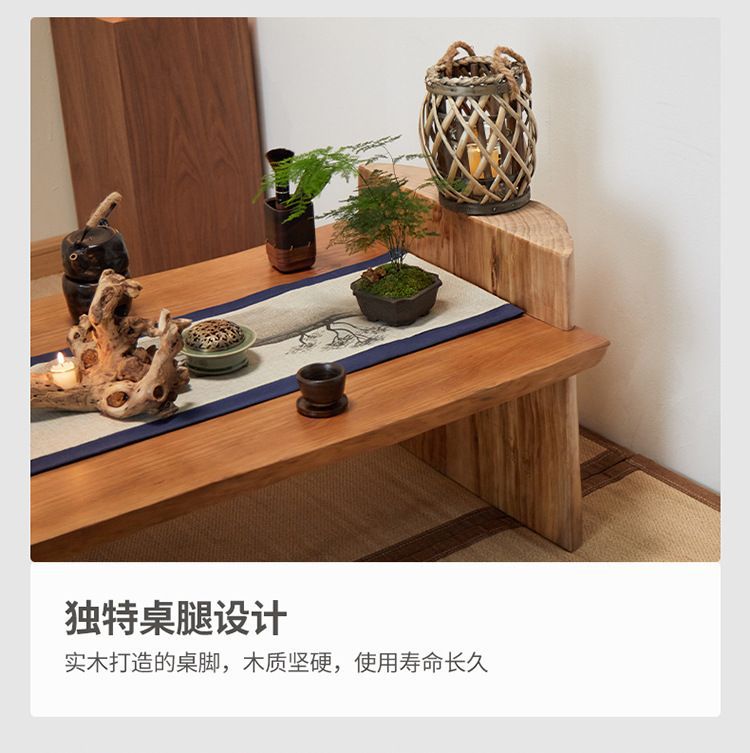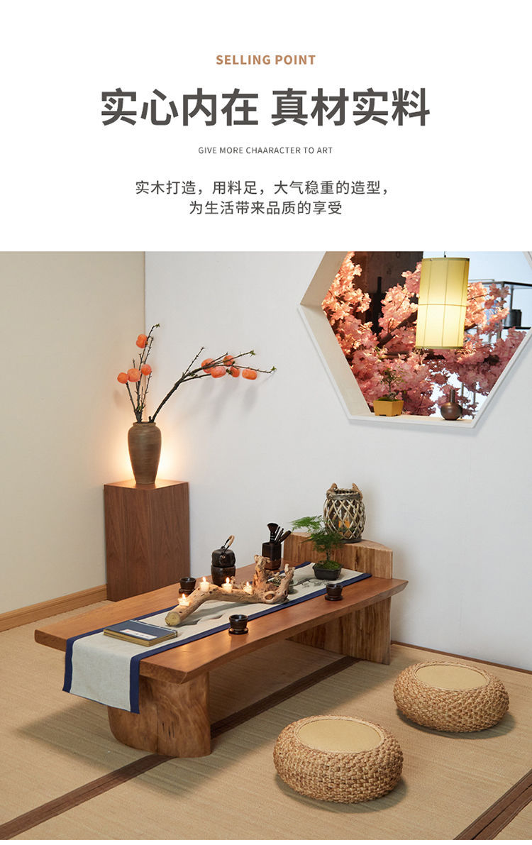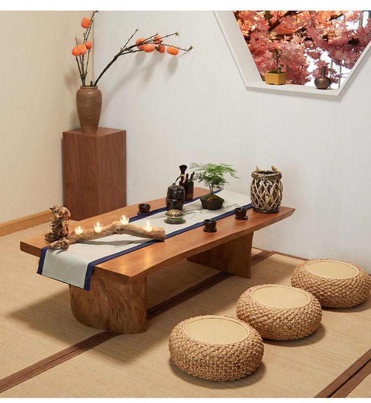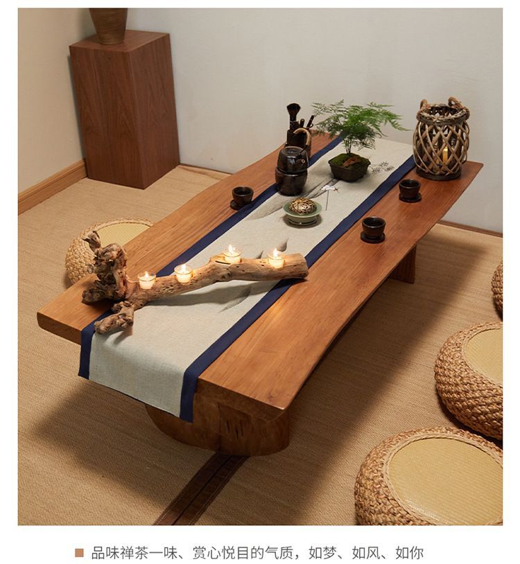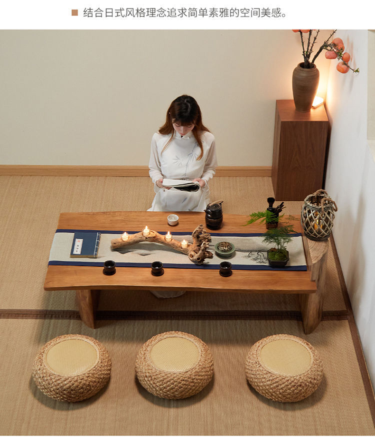 Gỗ nguyên khối nhà ban công bàn trà kết hợp ghế nhà trọ Zen wabi sabi phong cách trà nghệ thuật bàn trà Nhật Bản tatami bàn cà phê