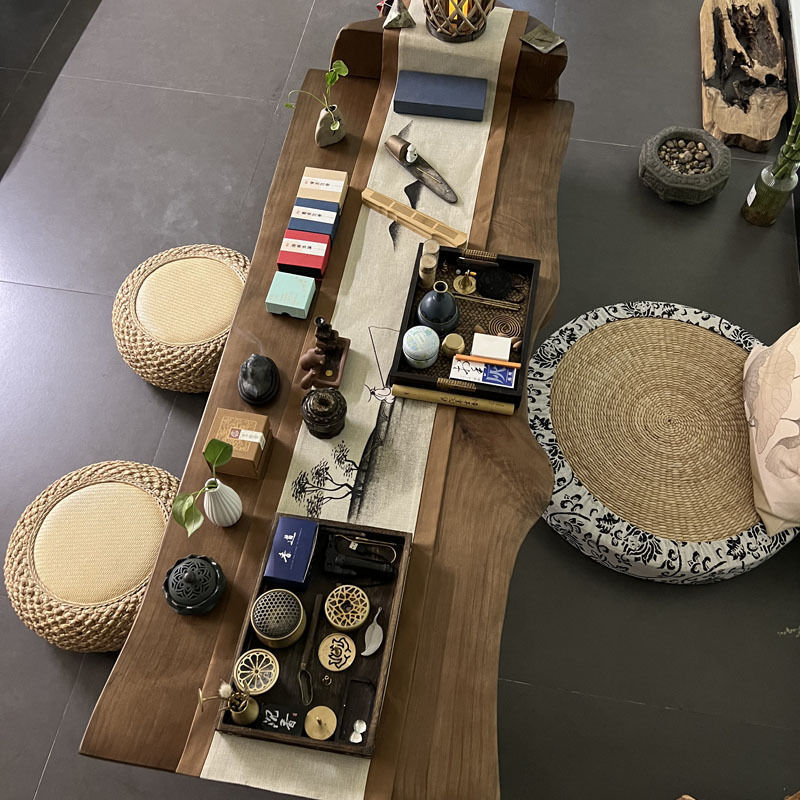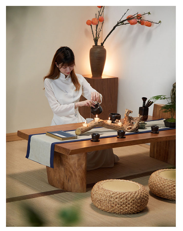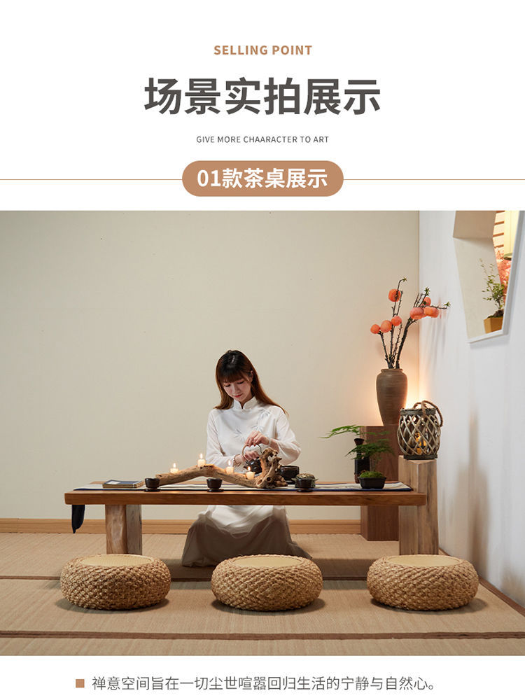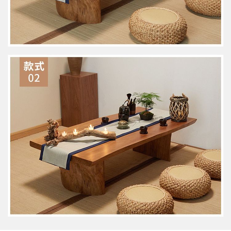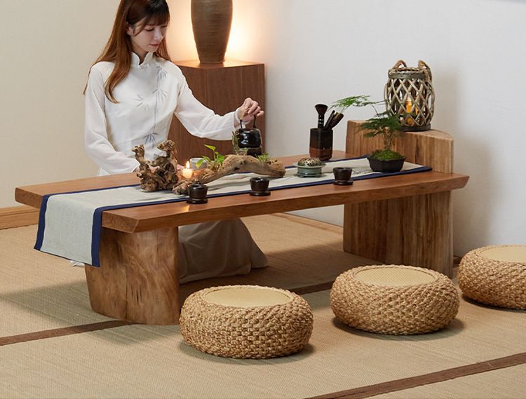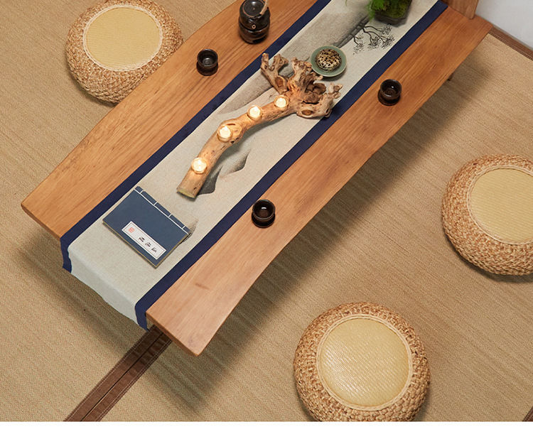 Gỗ nguyên khối nhà ban công bàn trà kết hợp ghế nhà trọ Zen wabi sabi phong cách trà nghệ thuật bàn trà Nhật Bản tatami bàn cà phê