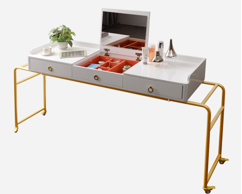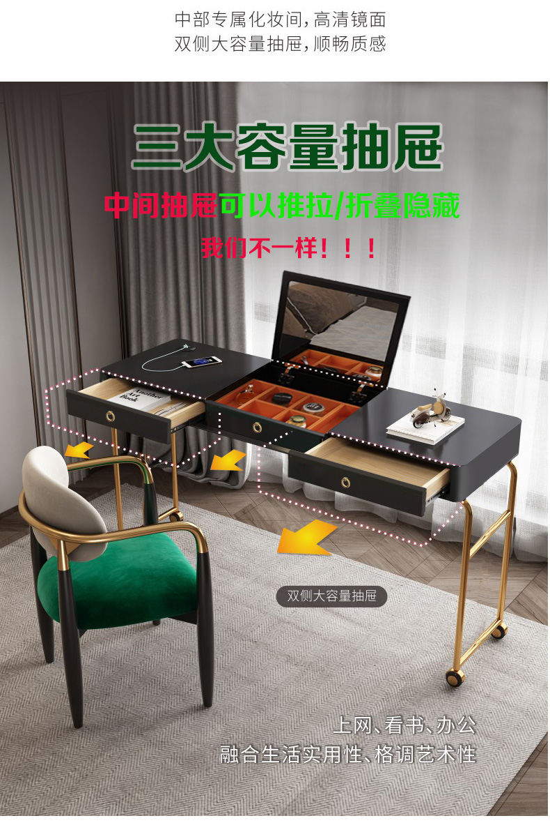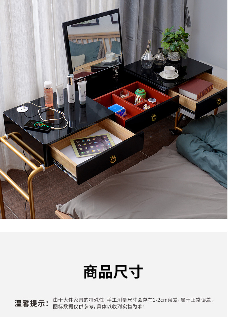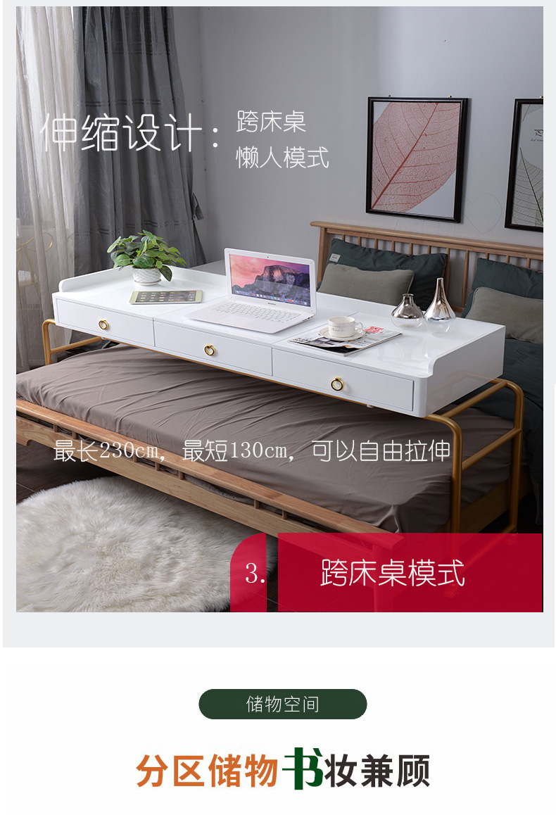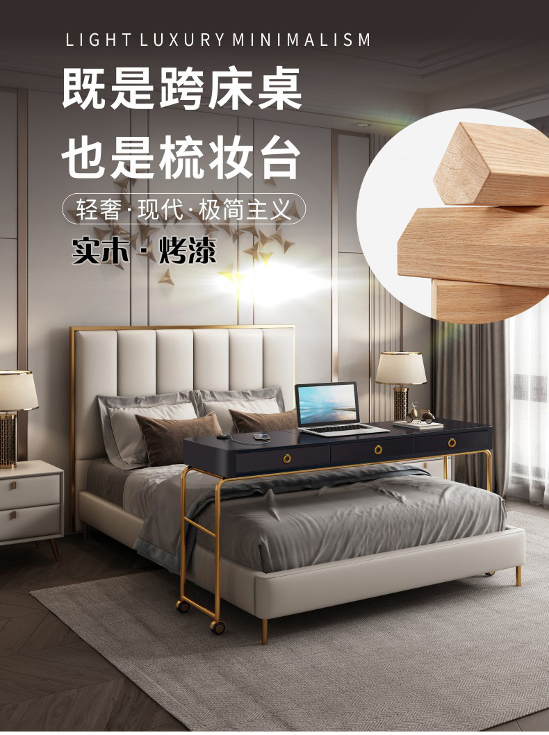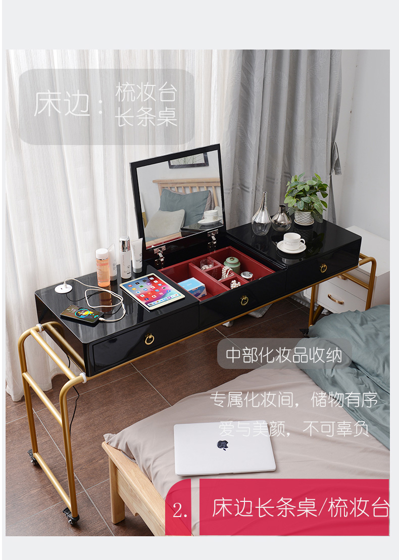 Gỗ rắn ánh sáng sang trọng giường chéo bàn phòng ngủ đơn giản đầu giường có thể di chuyển được dải kính thiên văn bàn trang điểm bàn máy tính tích hợp