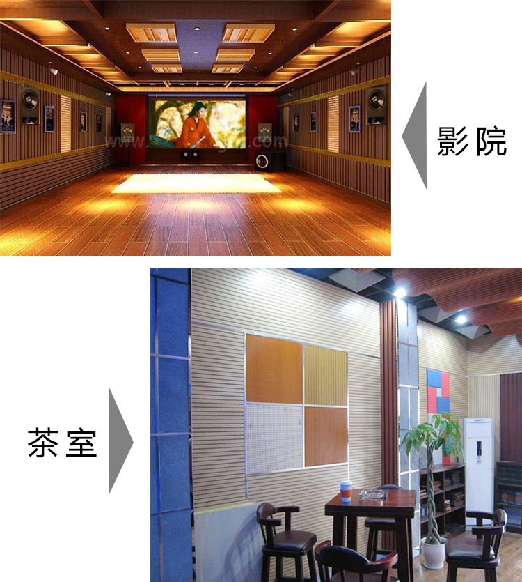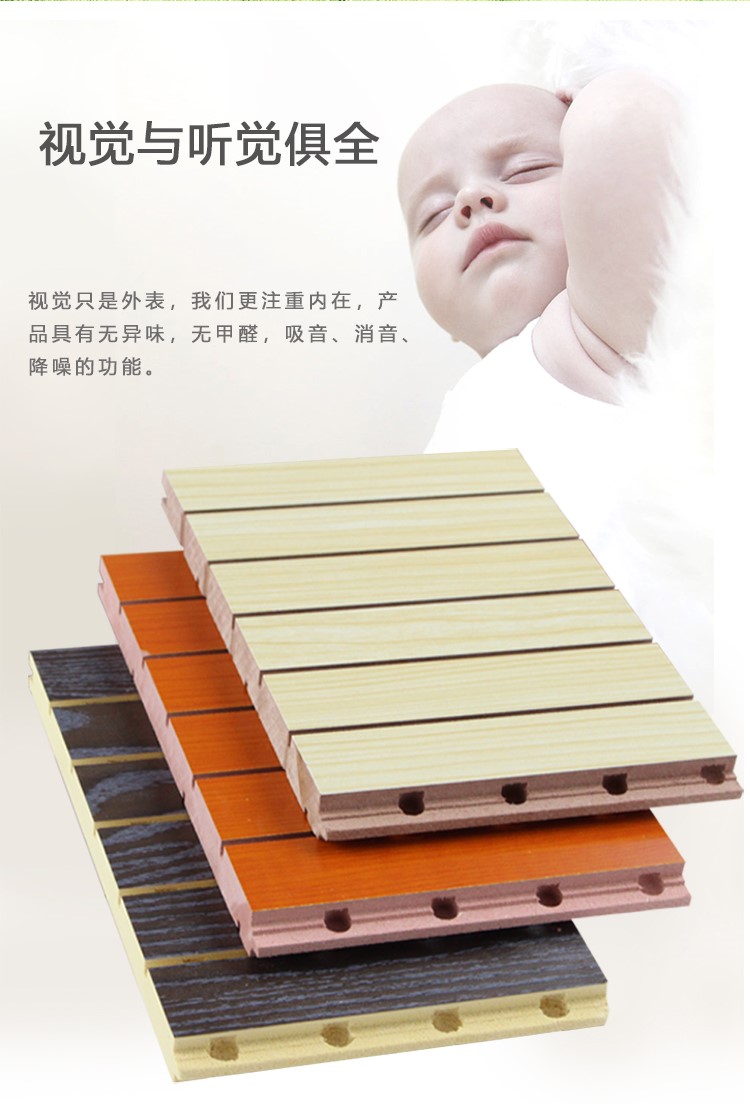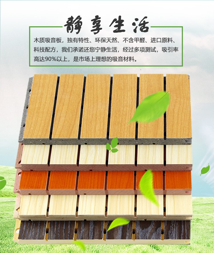 Gỗ rắn hấp thụ âm thanh bằng nhôm gốm thiết bị cách âm đục lỗ tường phòng ngủ trang trí rãnh gỗ cách âm trong nhà Tấm hấp thụ âm thanh bằng gỗ