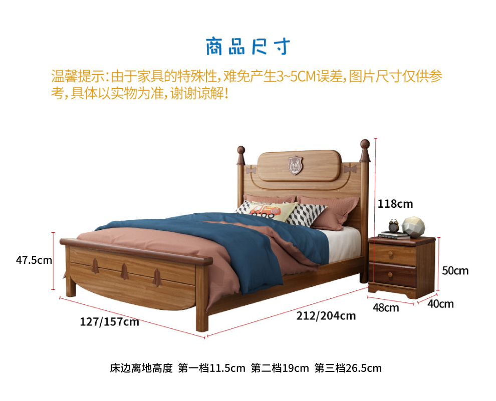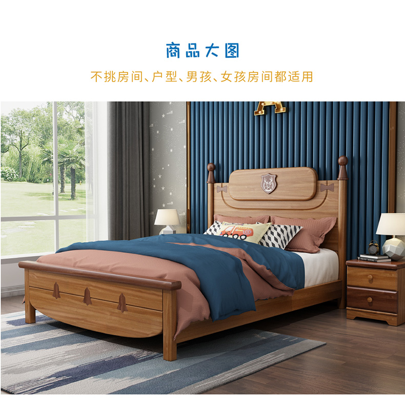 Gỗ sáp dầu óc chó giường gỗ rắn giường trẻ em giường 1,5m 1,2m1,35m nội thất phòng ngủ giường đơn