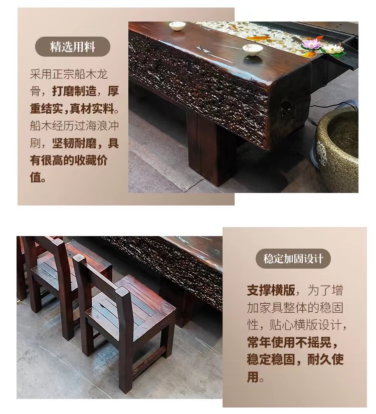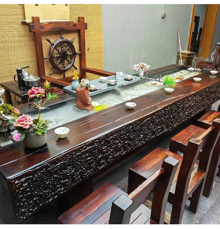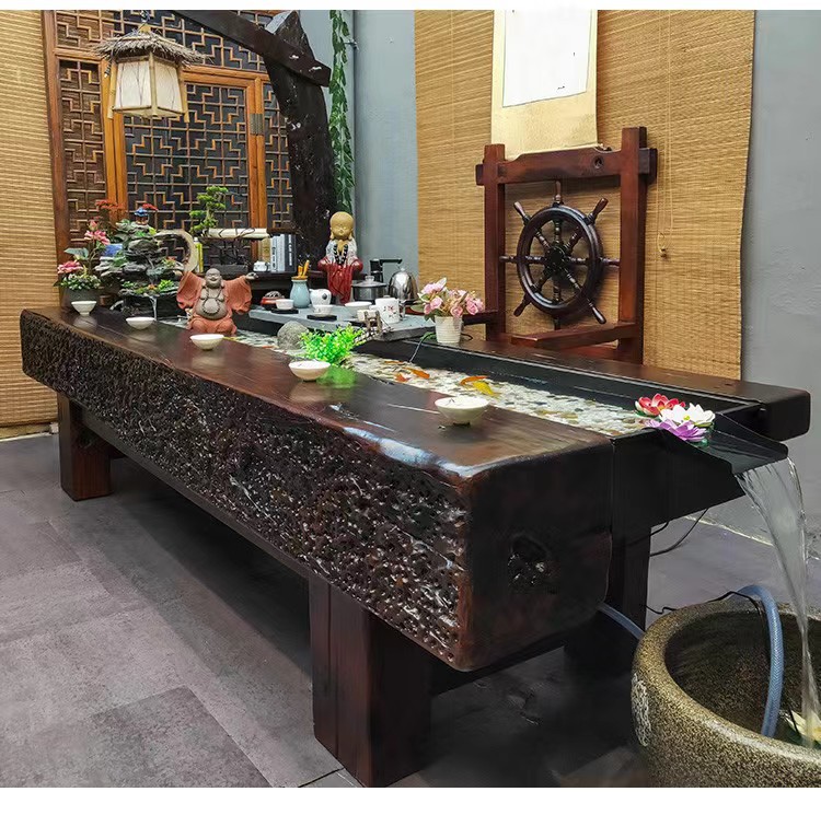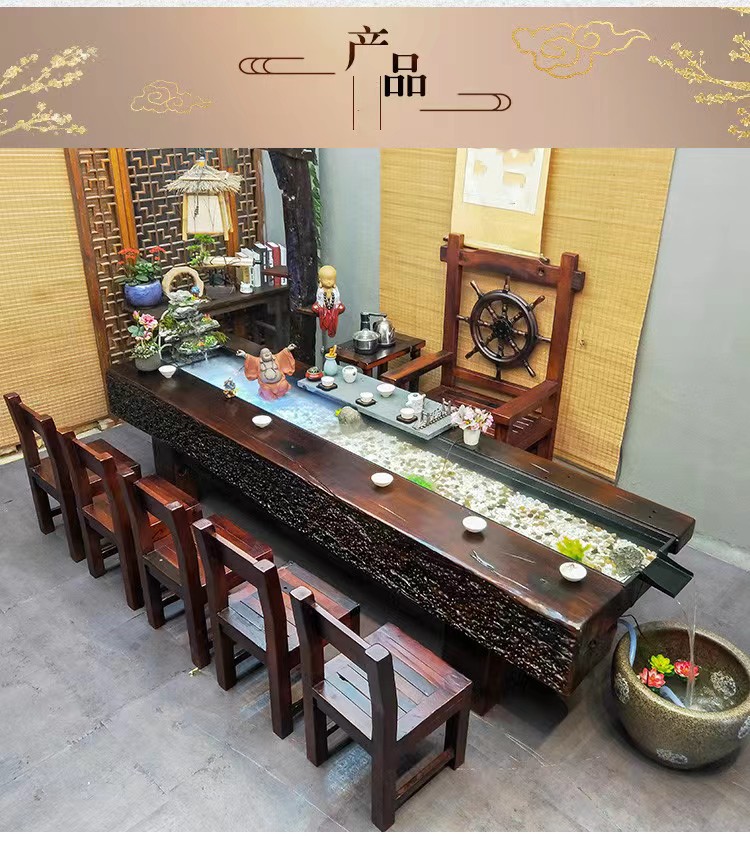 Gỗ thuyền Bàn trà gỗ và ghế kết hợp gỗ đặc phong cách Trung Quốc mới Bàn trà nước chảy phòng khách Bàn trà nuôi cá thiền Bàn trà kung fu