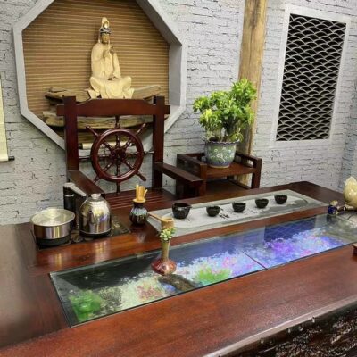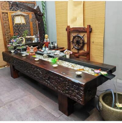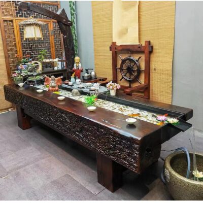 Gỗ thuyền Bàn trà gỗ và ghế kết hợp gỗ đặc phong cách Trung Quốc mới Bàn trà nước chảy phòng khách Bàn trà nuôi cá thiền Bàn trà kung fu