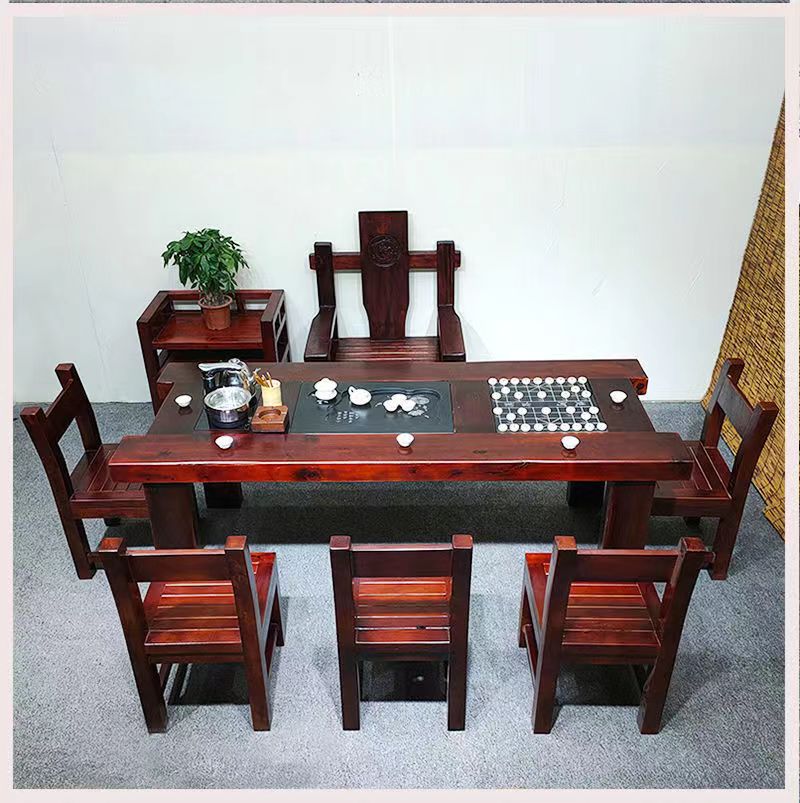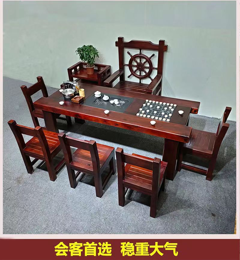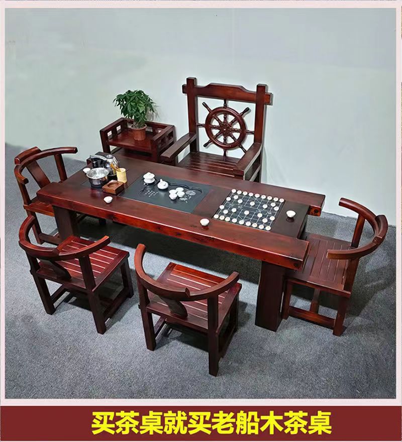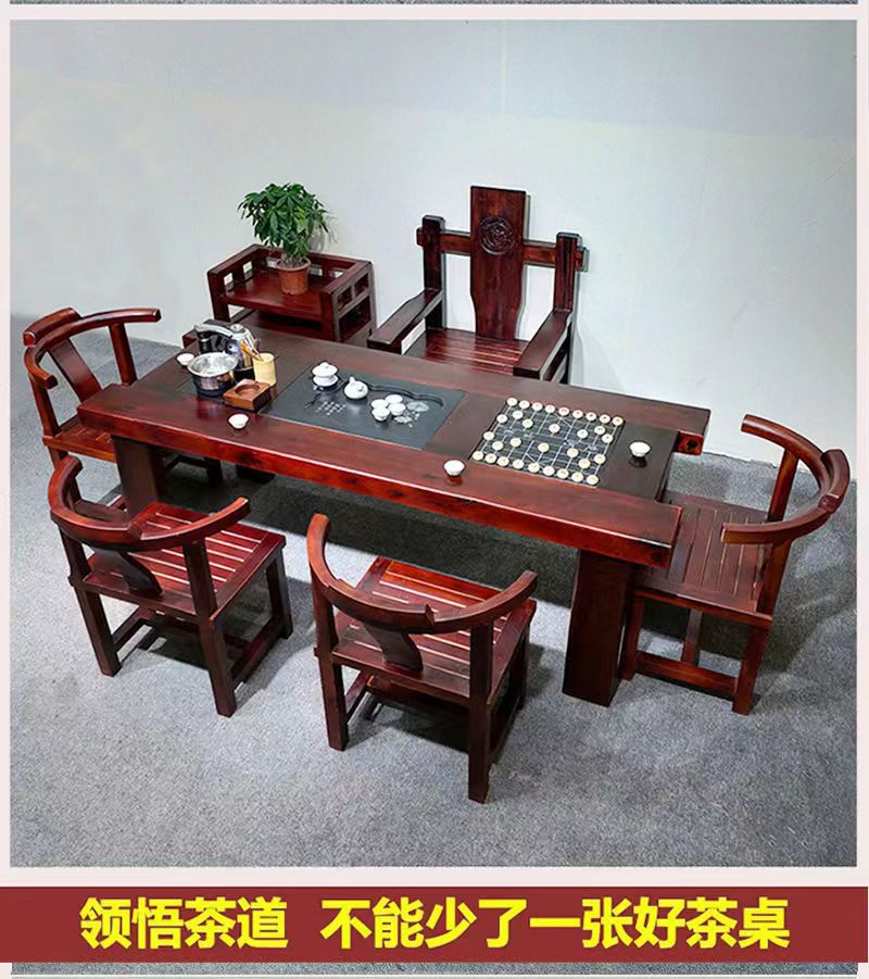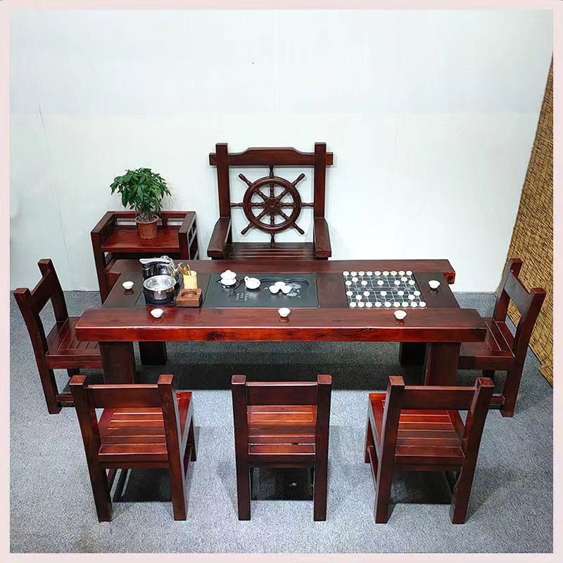 Gỗ thuyền Bàn trà gỗ và ghế kết hợp phong cách Trung Quốc Bàn trà gia đình bằng gỗ nguyên khối Bàn trà kung fu trọn bộ Bàn trà tiếp khách văn phòng