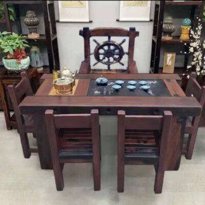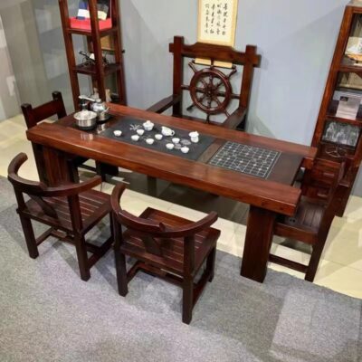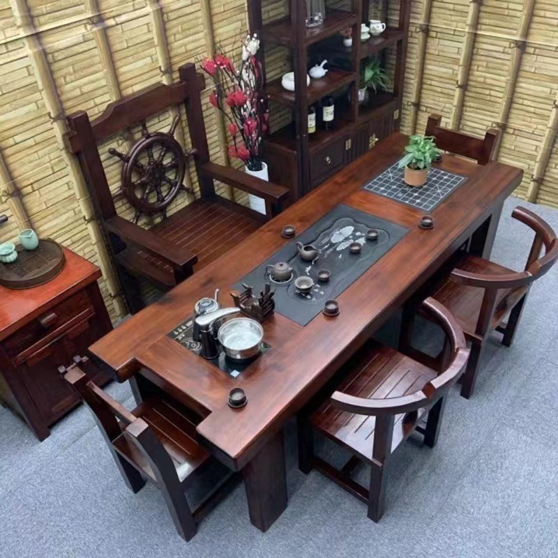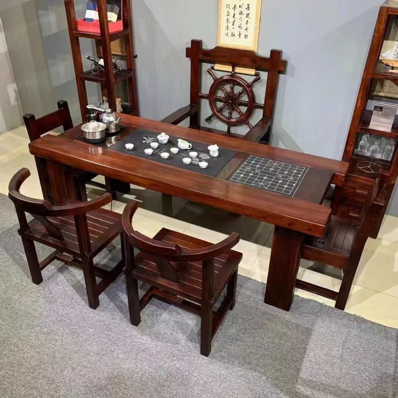 Gỗ thuyền Bàn trà gỗ và ghế kết hợp phong cách Trung Quốc Bàn trà gia đình bằng gỗ nguyên khối Bàn trà kung fu trọn bộ Bàn trà tiếp khách văn phòng