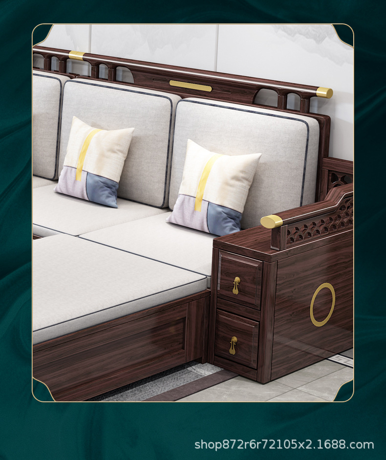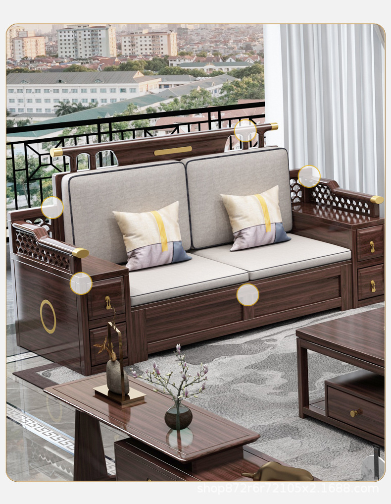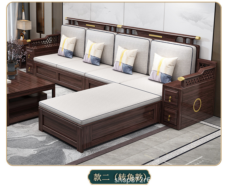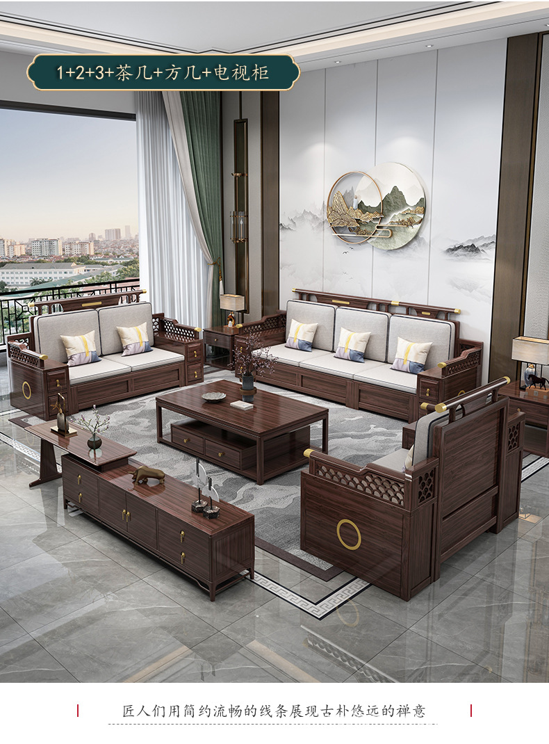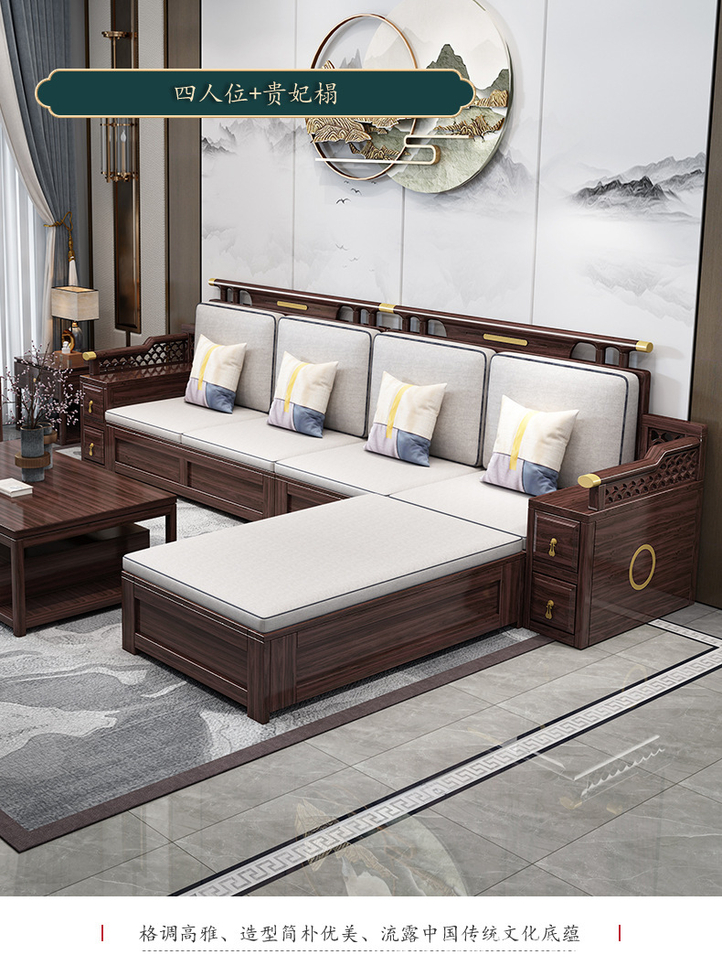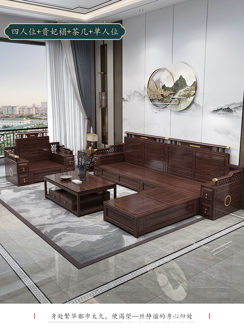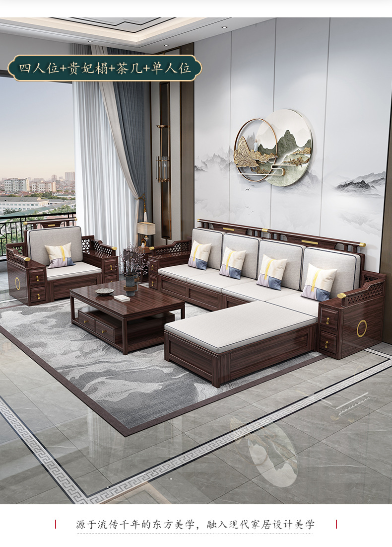 Gỗ vàng đen phong cách Trung Quốc mới sofa gỗ nguyên khối kết hợp hiện đại tối giản Zen phòng khách phong cách Trung Quốc sofa góc căn hộ lớn