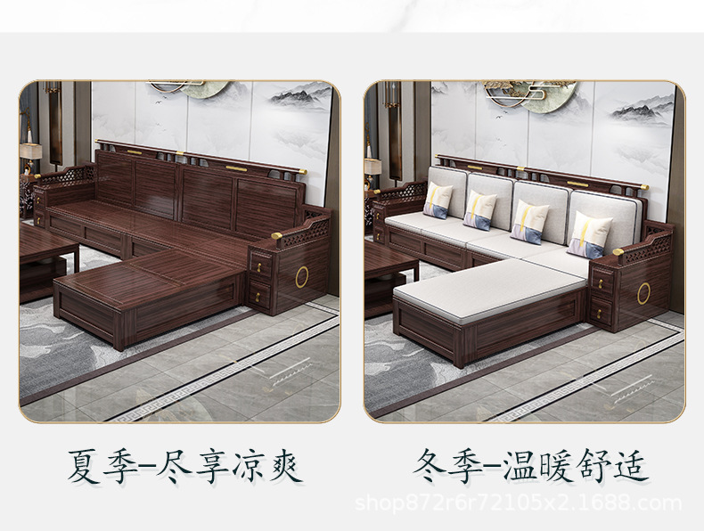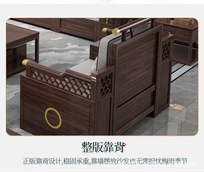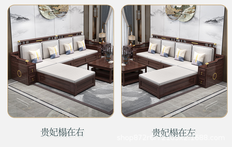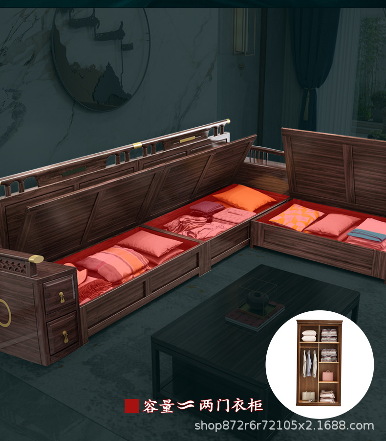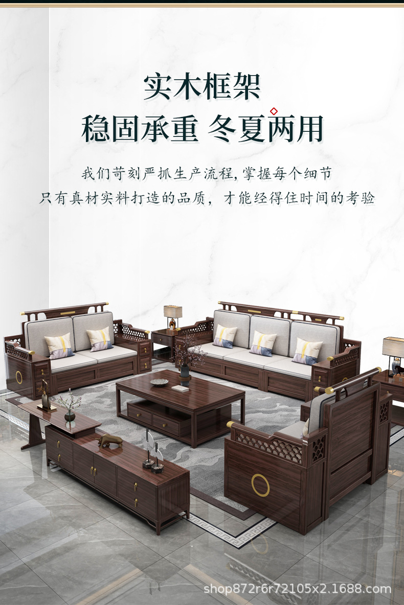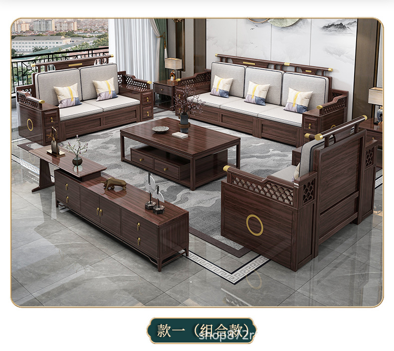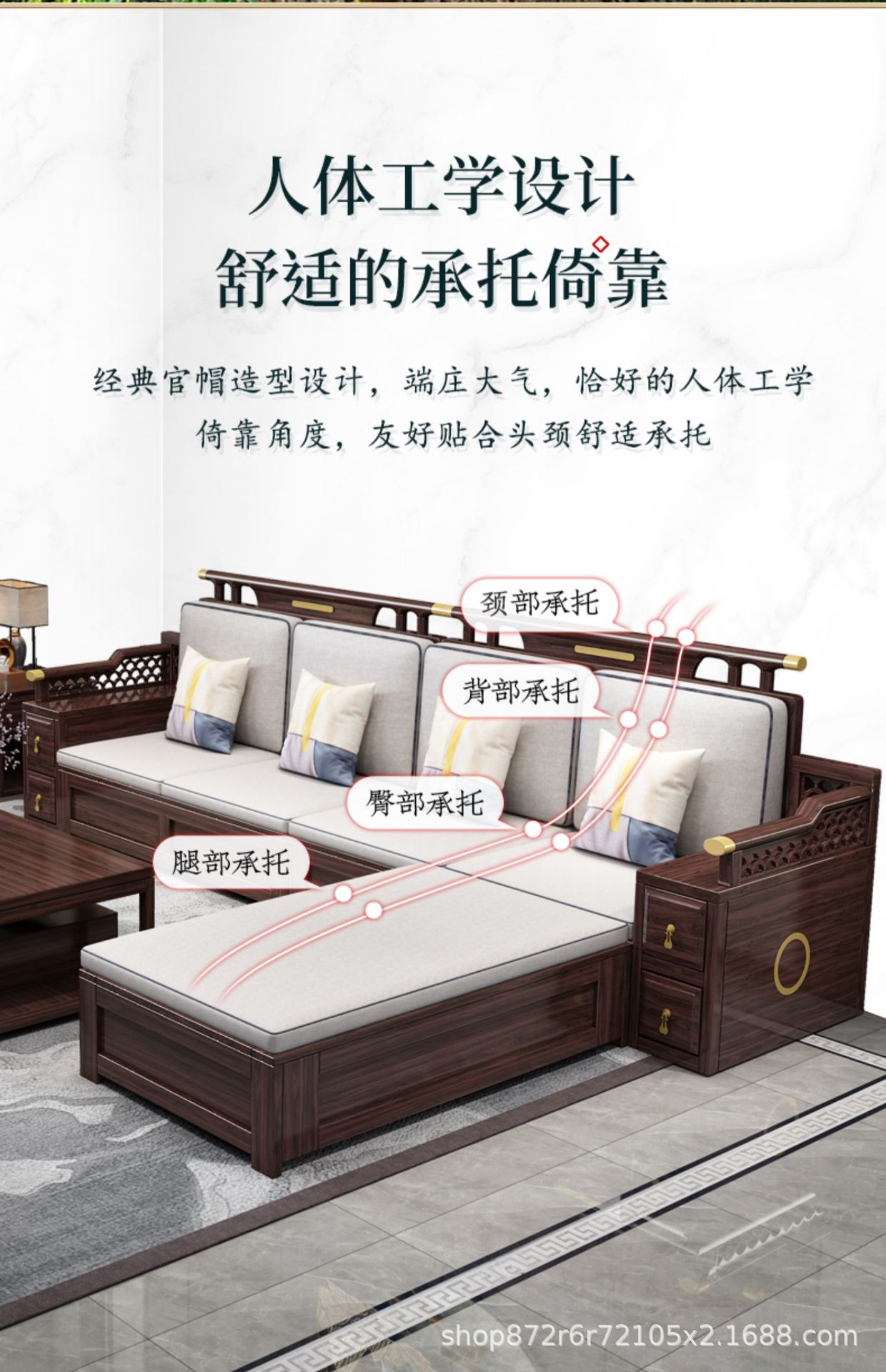 Gỗ vàng đen phong cách Trung Quốc mới sofa gỗ nguyên khối kết hợp hiện đại tối giản Zen phòng khách phong cách Trung Quốc sofa góc căn hộ lớn