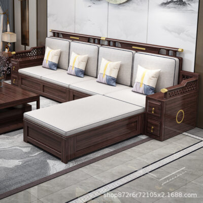 Gỗ vàng đen phong cách Trung Quốc mới sofa gỗ nguyên khối kết hợp hiện đại tối giản Zen phòng khách phong cách Trung Quốc sofa góc căn hộ lớn