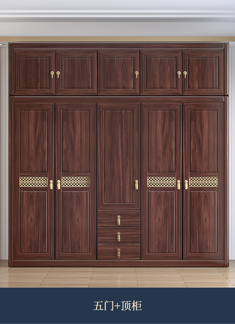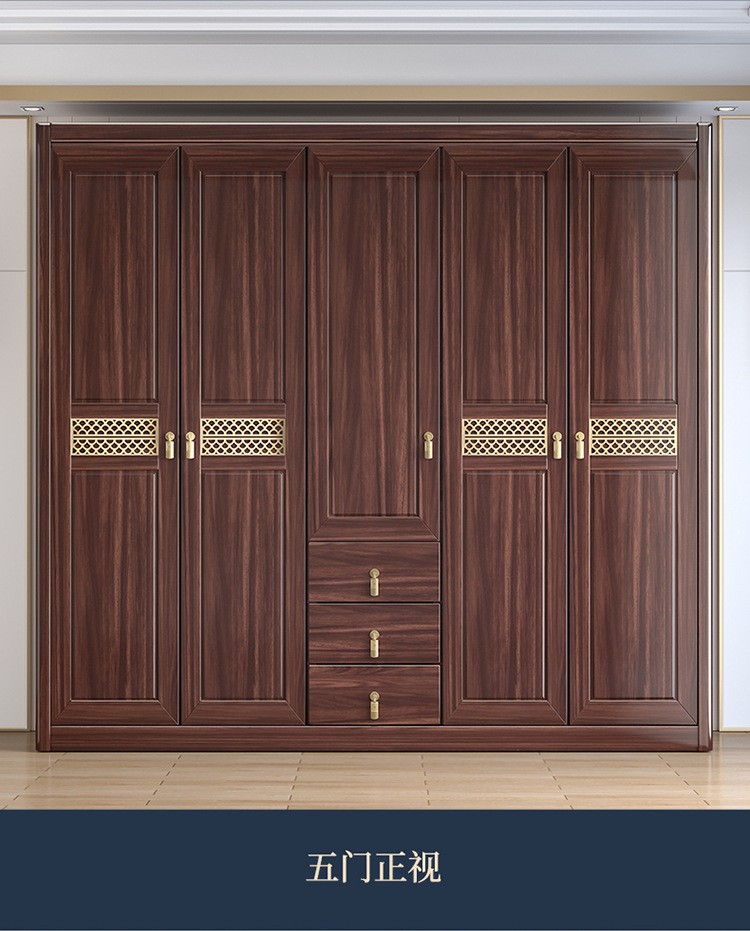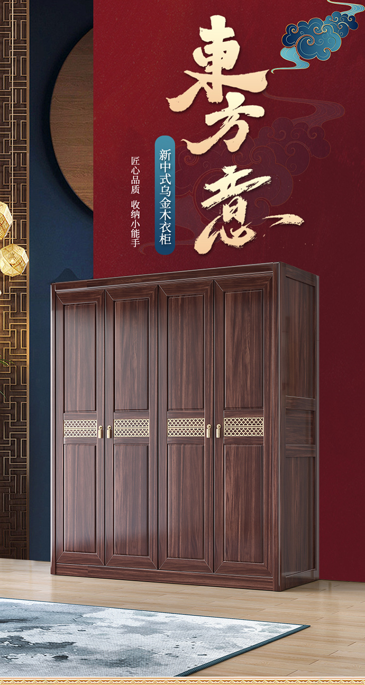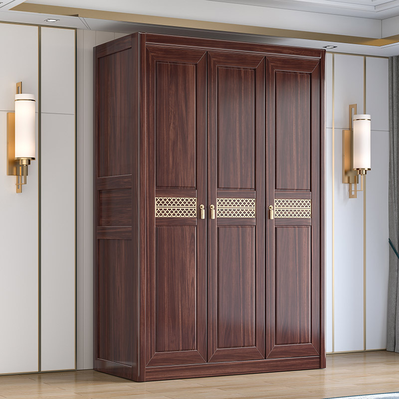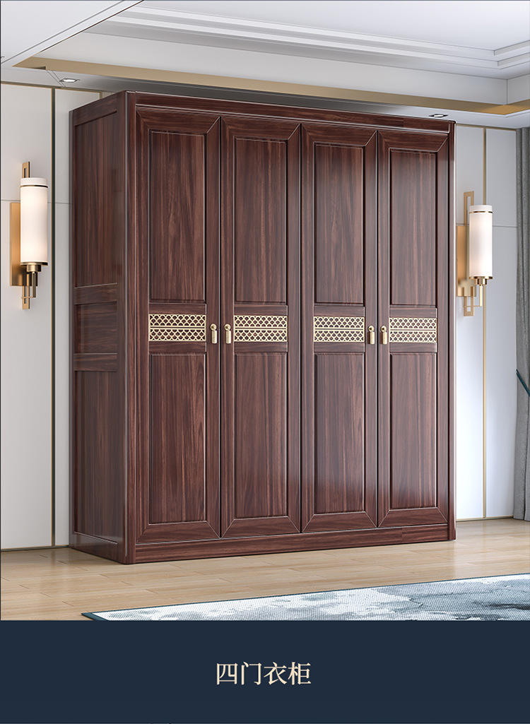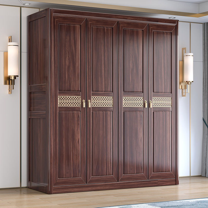 Gỗ vàng đen tất cả gỗ nguyên khối gỗ tủ quần áo phòng ngủ phong cách Trung Quốc mới cửa lưu trữ tủ đựng đồ hộ gia đình tủ quần áo gỗ nguyên khối