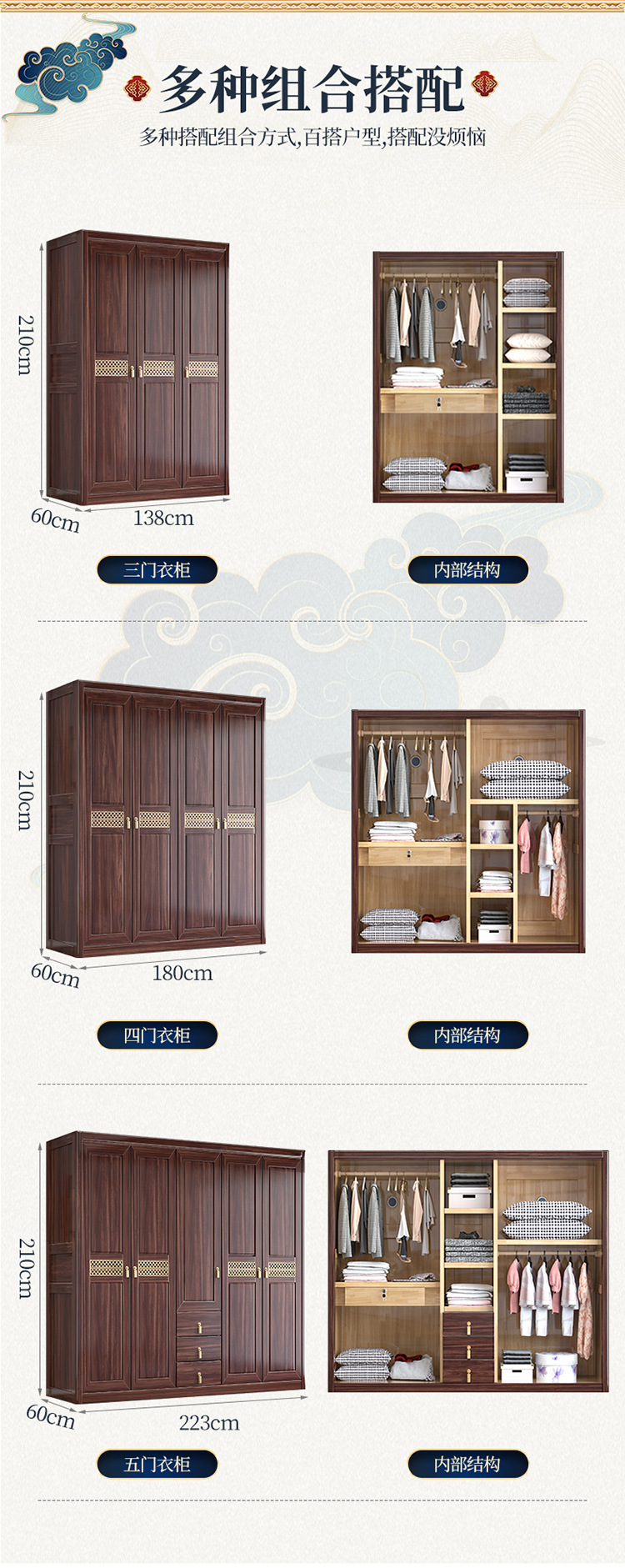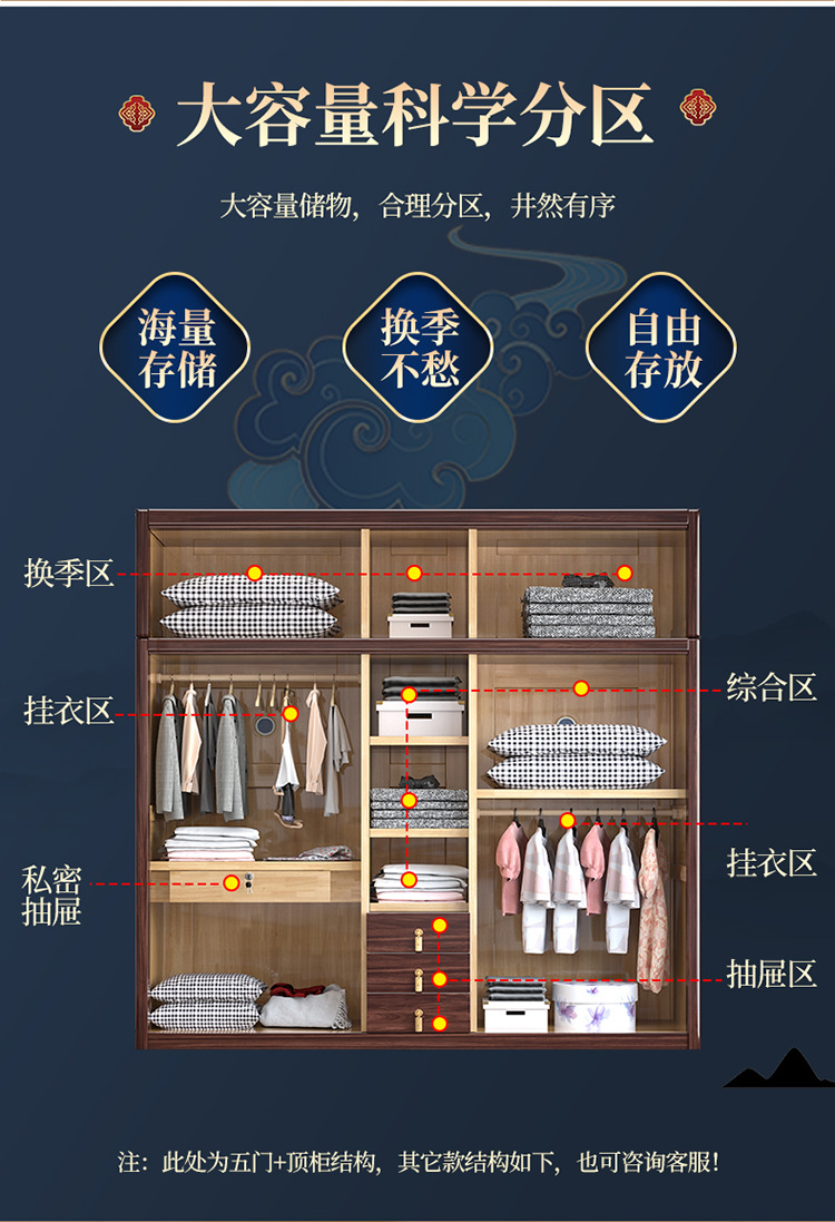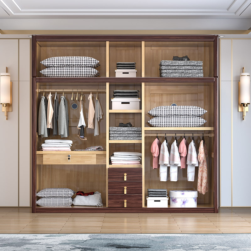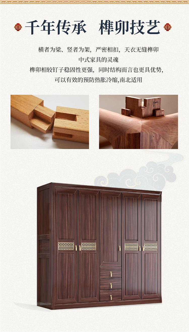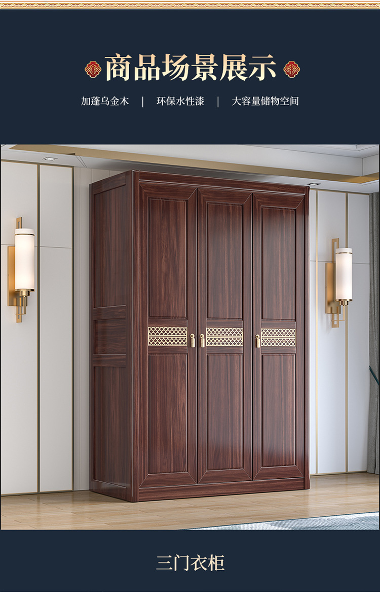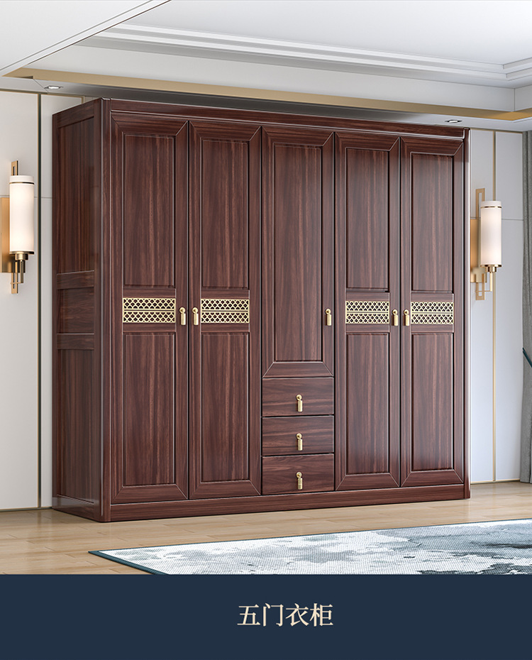 Gỗ vàng đen tất cả gỗ nguyên khối gỗ tủ quần áo phòng ngủ phong cách Trung Quốc mới cửa lưu trữ tủ đựng đồ hộ gia đình tủ quần áo gỗ nguyên khối