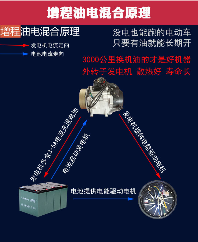 God of War dầu-điện kép mục đích mở rộng điện ba bánh dầu-điện lai điện xe máy ba bánh vận chuyển pin