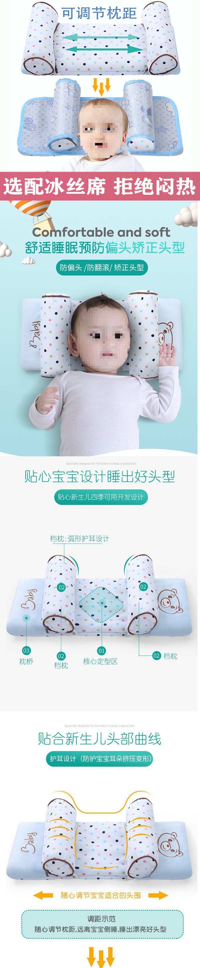 Gối cho bé sơ sinh chống lệch đầu gối định hình chỉnh lệch đầu đồ dùng sơ sinh mùa hè lớn thoáng khí