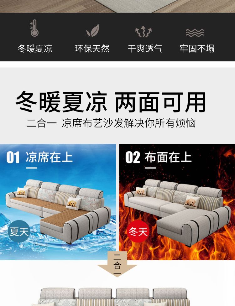Gói phòng khách kết hợp sofa kép mùa đông và mùa hè hiện đại căn hộ kích thước tối giản sofa vải tiết kiệm có thể tháo rời và có thể giặt được
