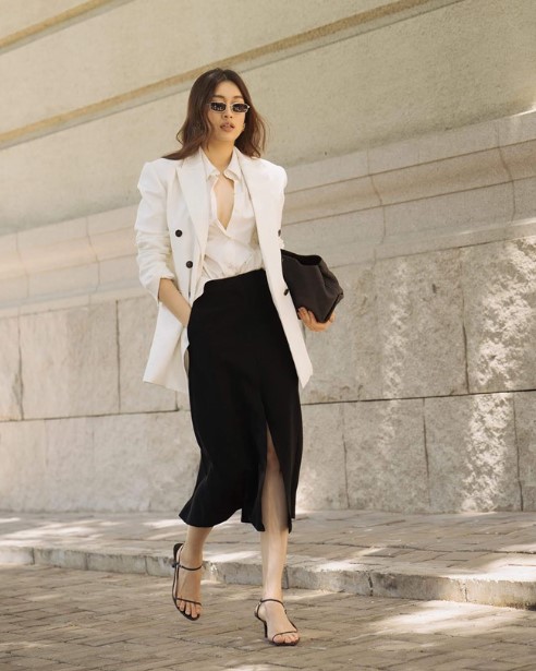Áo vest là item dành cho những cô nàng cá tính, năng động và hướng đến sự hiện đại, mạnh mẽ. Trong khi đó chân váy dài dành cho những cô nàng nữ tính, dịu dàng. 2 món đồ này tưởng chừng không liên quan nhưng khi phối với nhau lại tạo ra một set đồ công sở hài hòa.