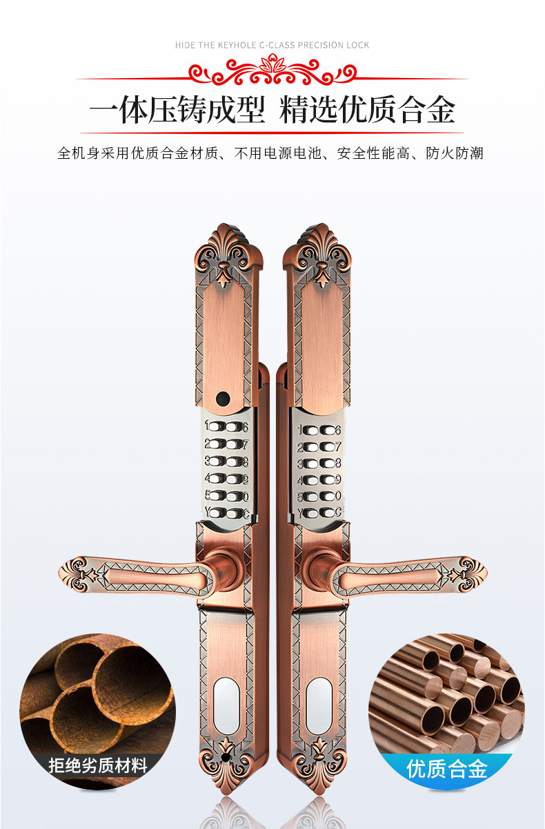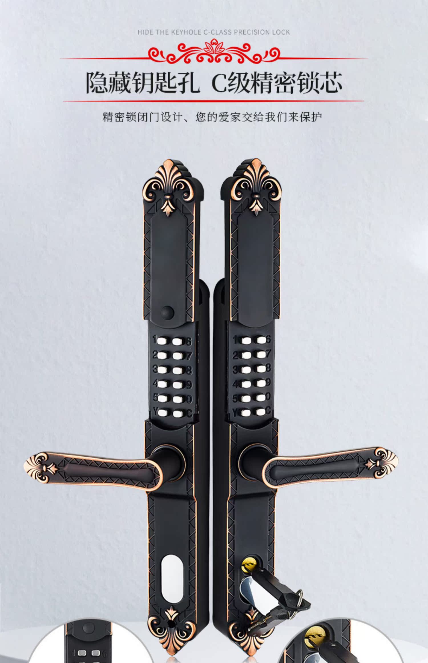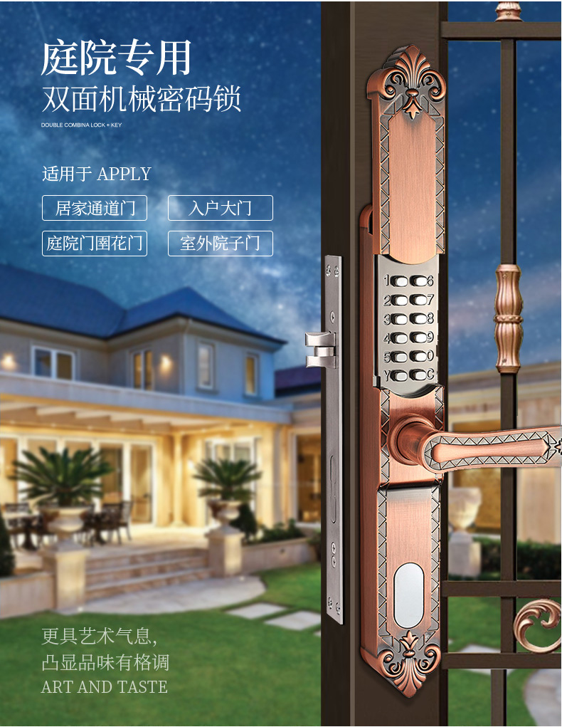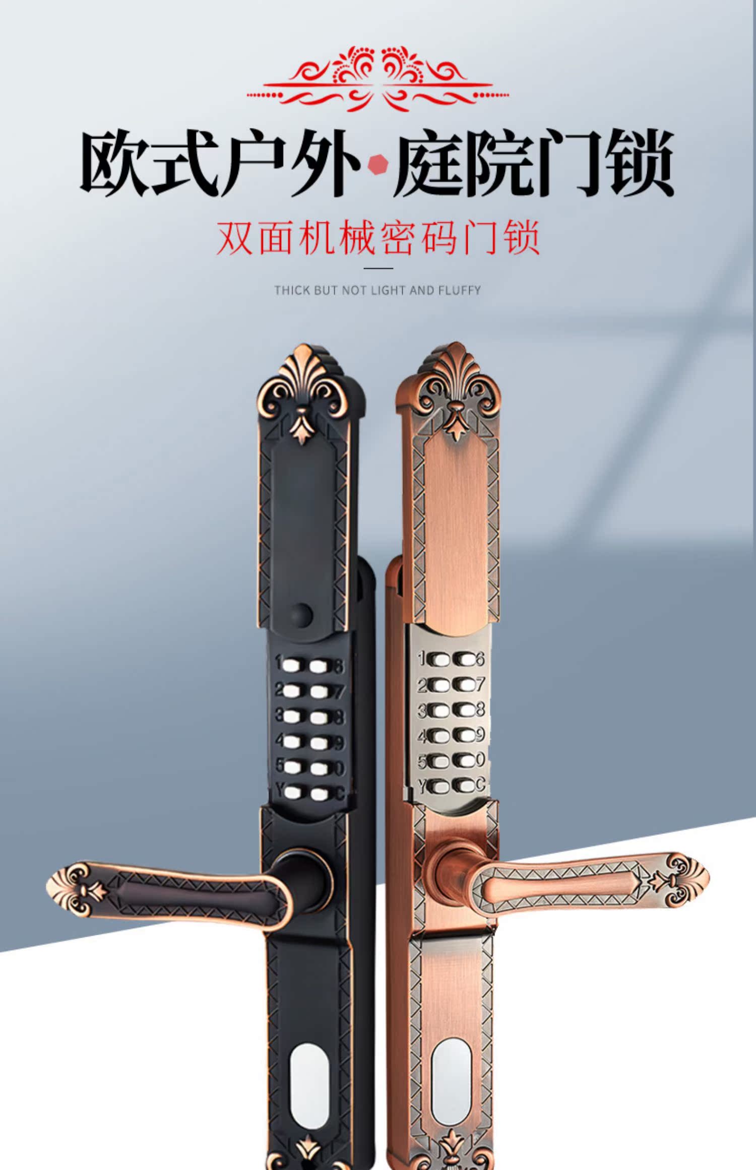 Guanxiang cơ học hai mặt khóa mật khẩu khóa cửa ngoài trời không thấm nước Châu Âu vào sân trong Cửa ra vào hợp kim nhôm khóa cửa với chìa khóa